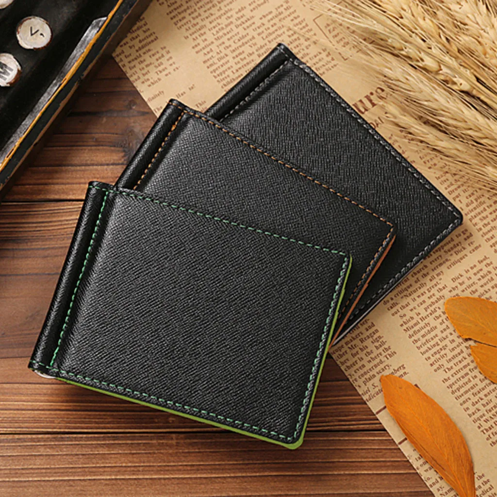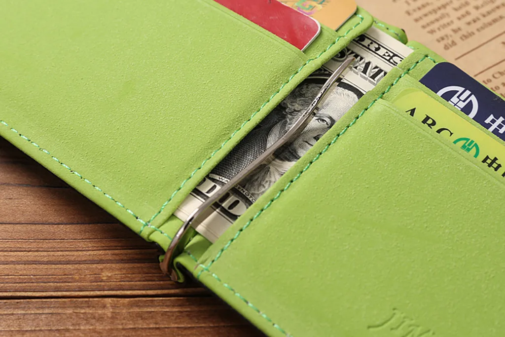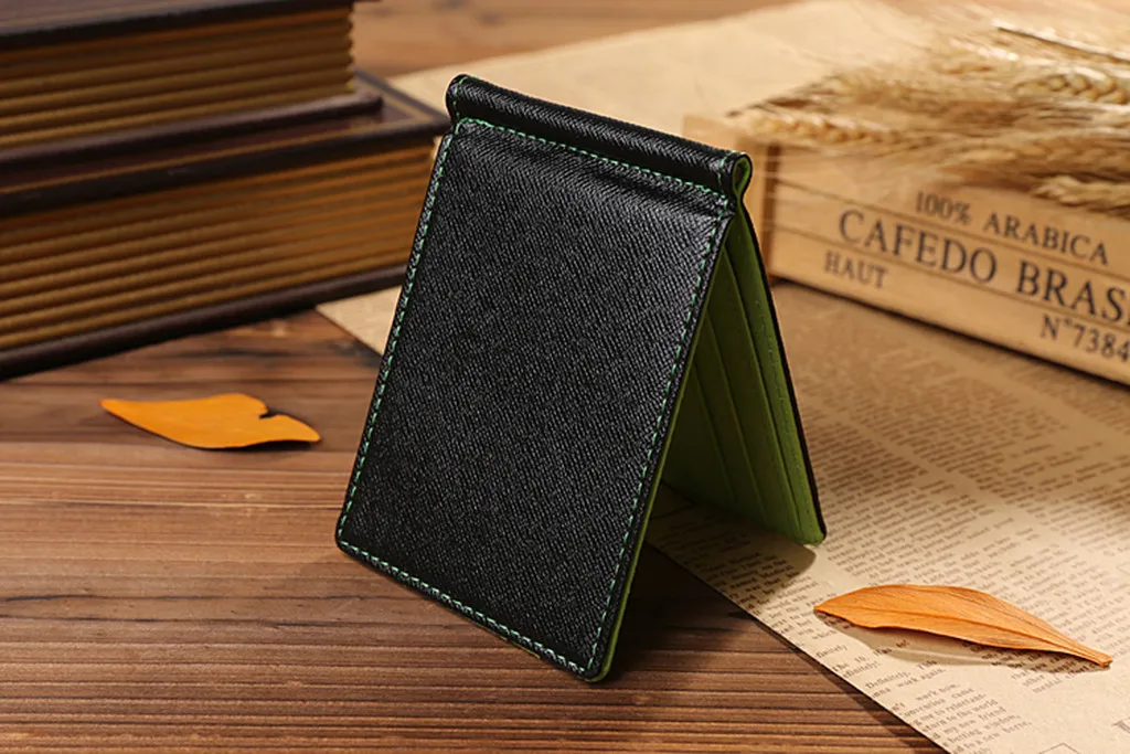 Мужской тонкий бумажник с клипсой в долларах, мини кожаный бумажник, ID Кредитная карта