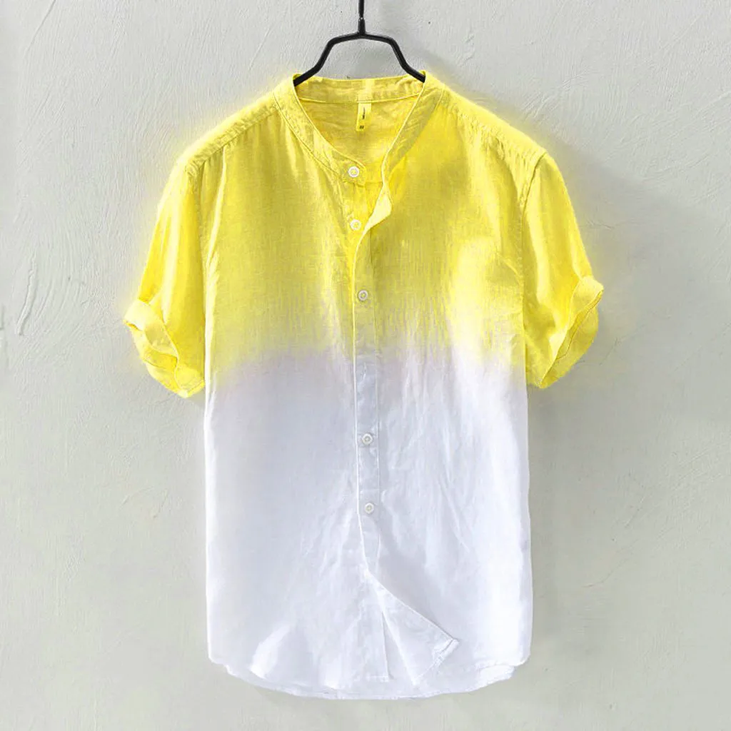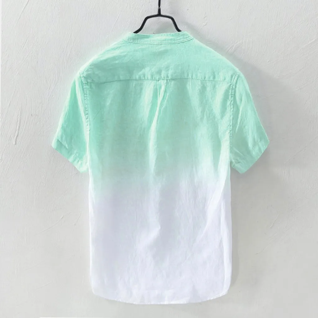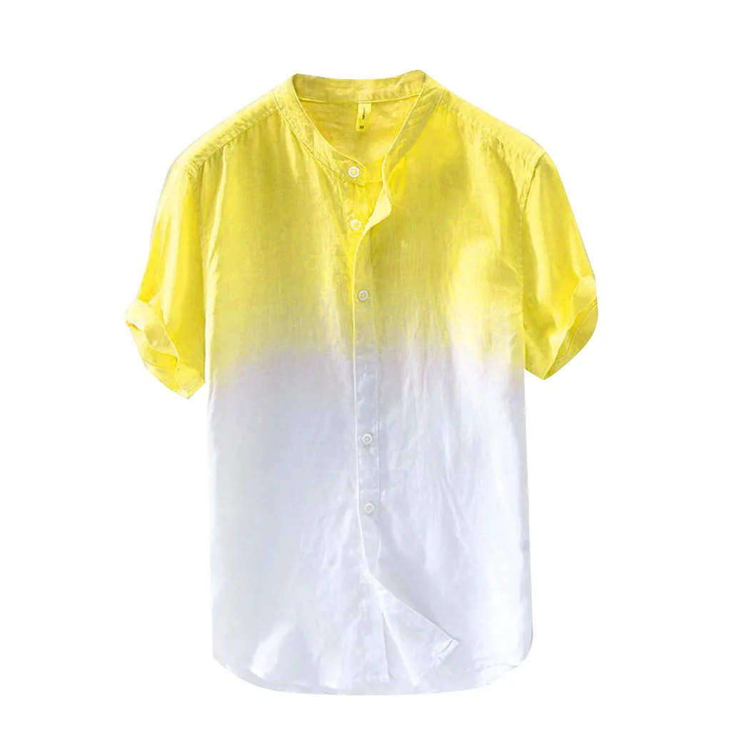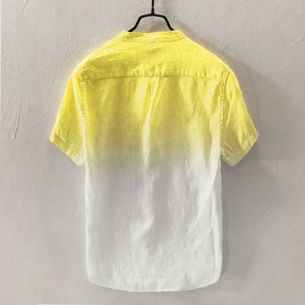 Летняя мужская крутая и тонкая дышащая рубашка из хлопка с крашеным градиентом
