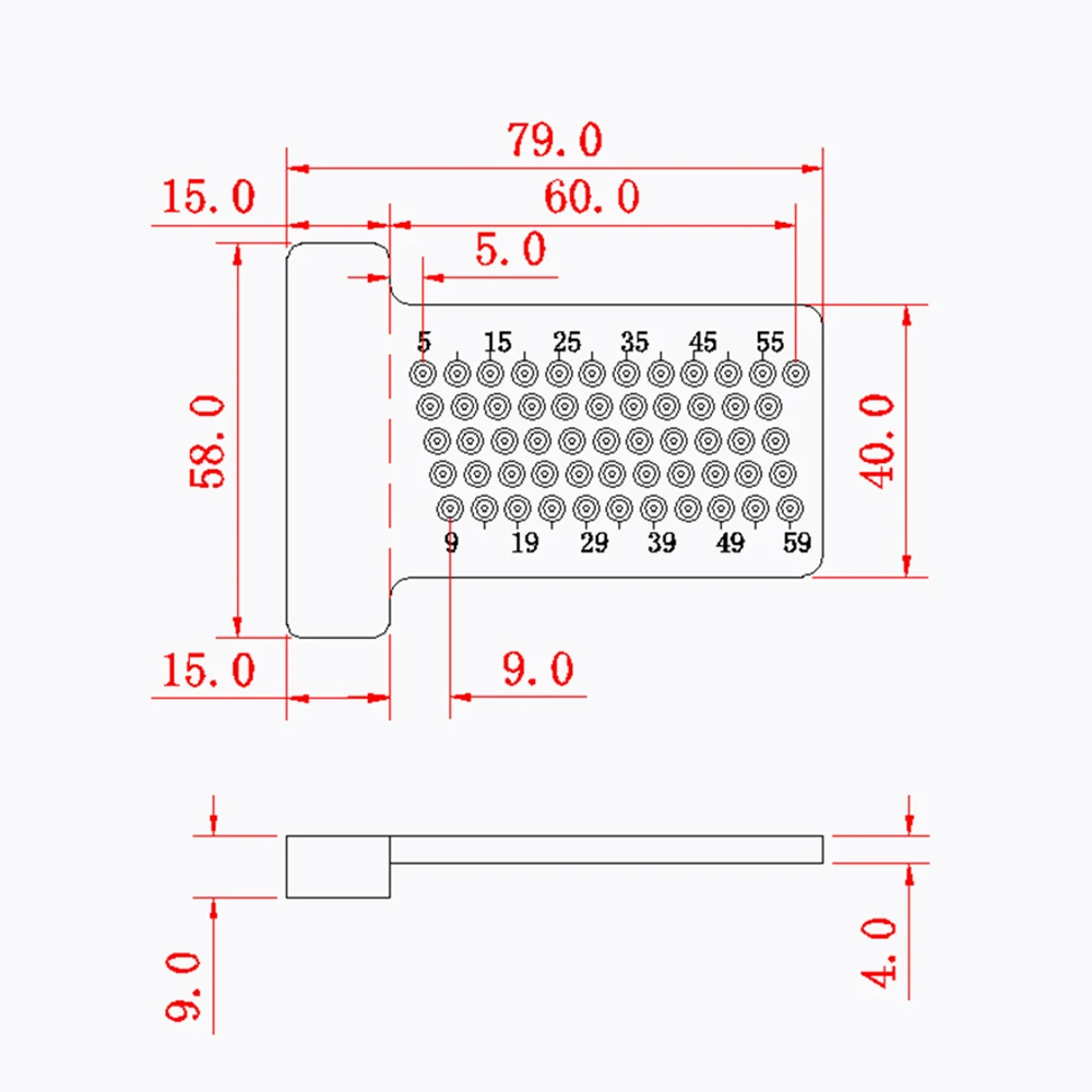 Точная маркировочная линейка с расстоянием отверстия 5 мм и размером отверстия 1 мм.