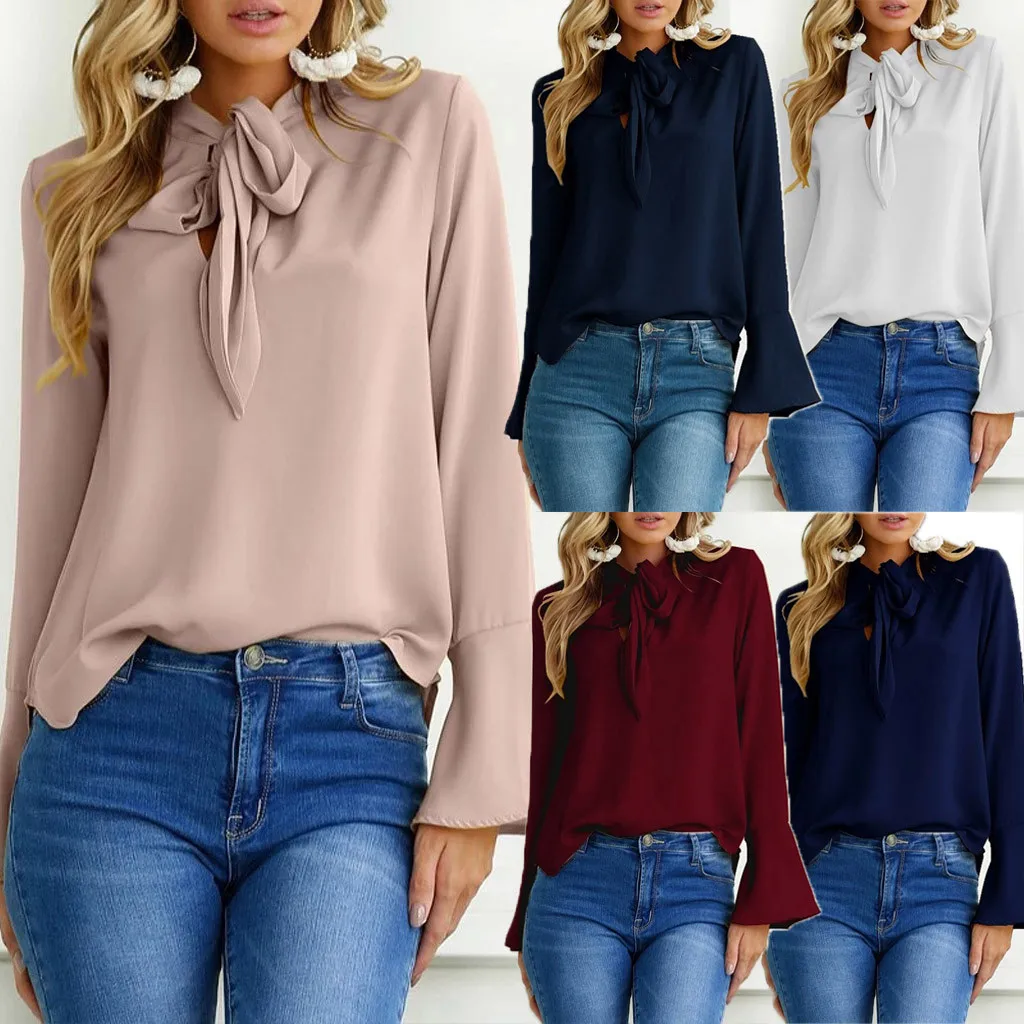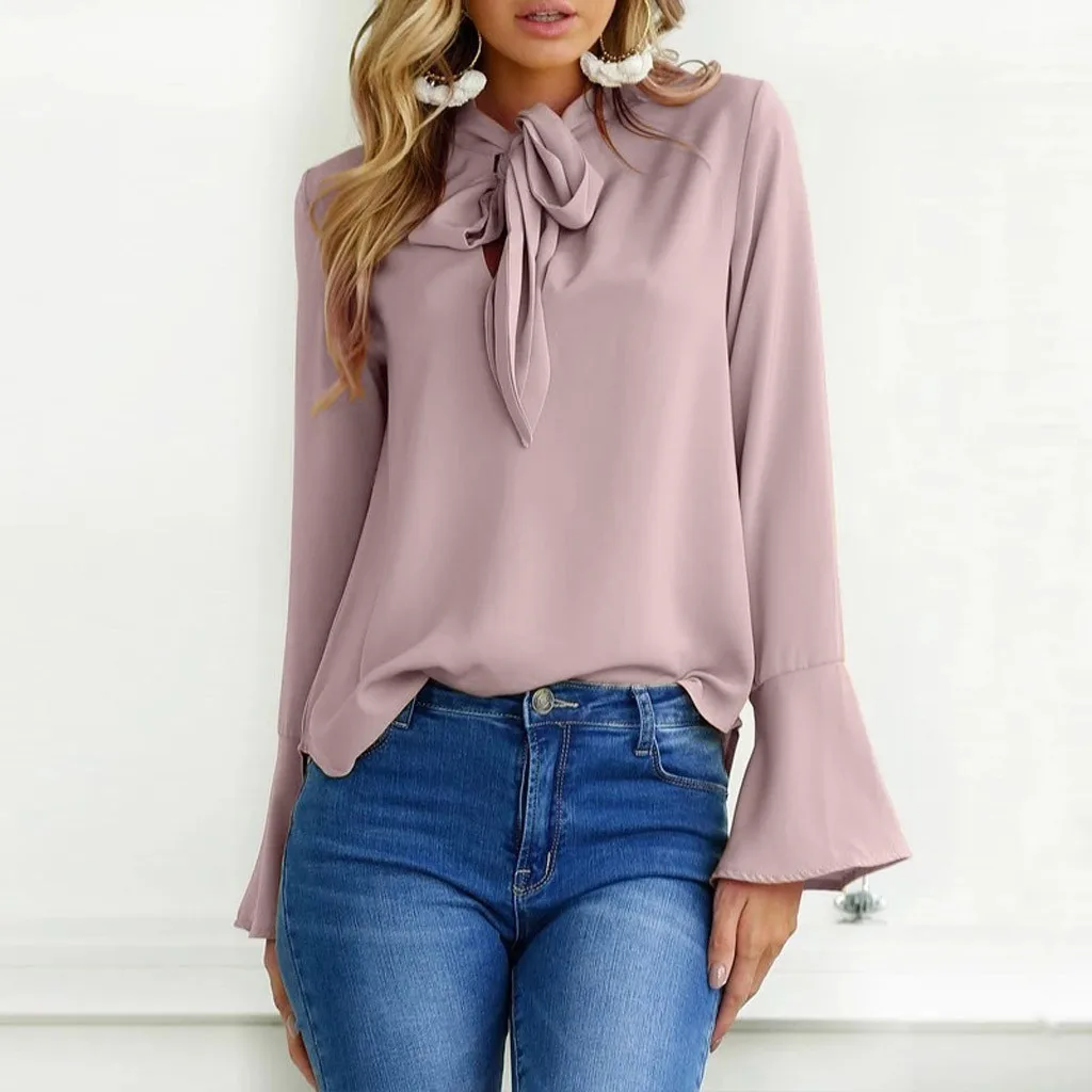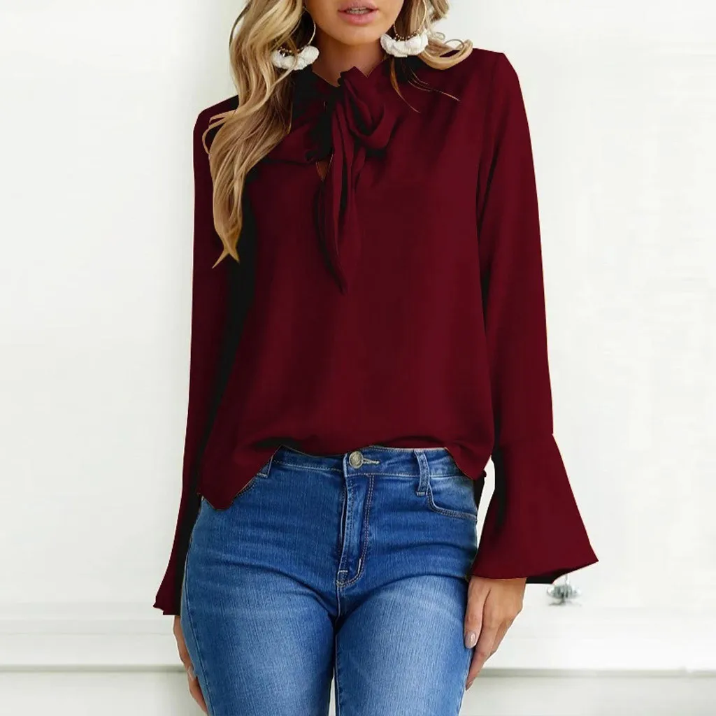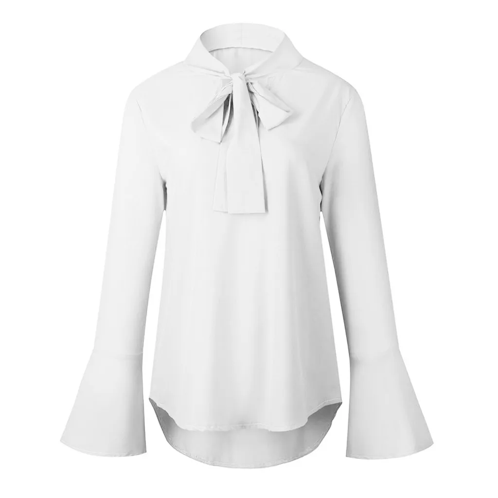 Женская рубашка с длинным рукавом и расклешенными рукавами, Повседневная Туника, топы, блузка