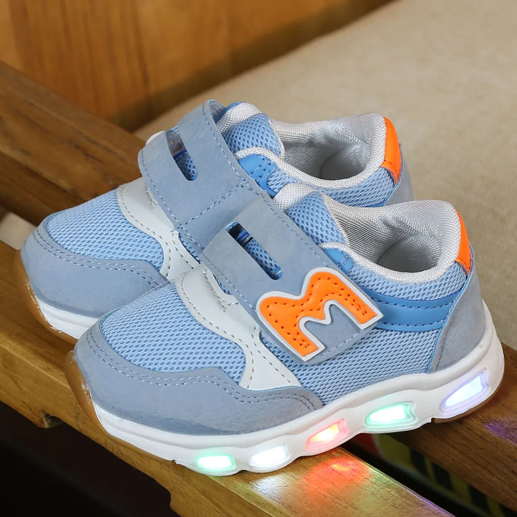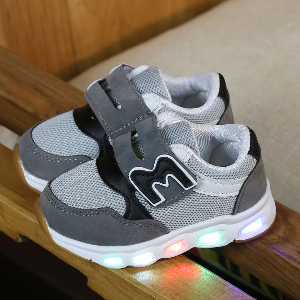Дышащая светящаяся спортивная обувь для маленьких девочек и мальчиков; Светодиодный свет; кроссовки