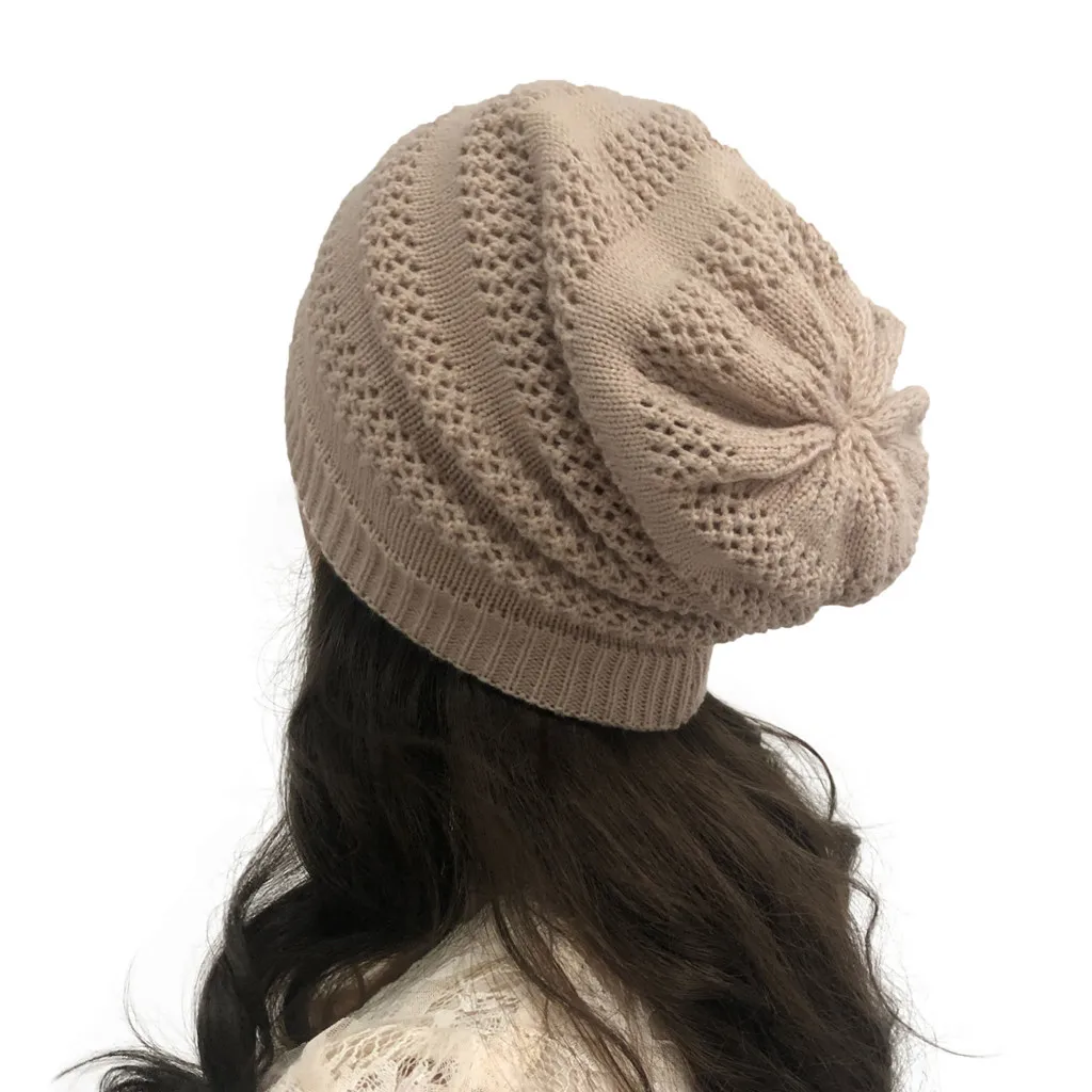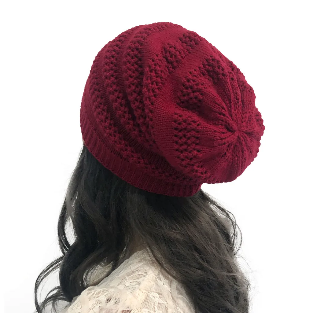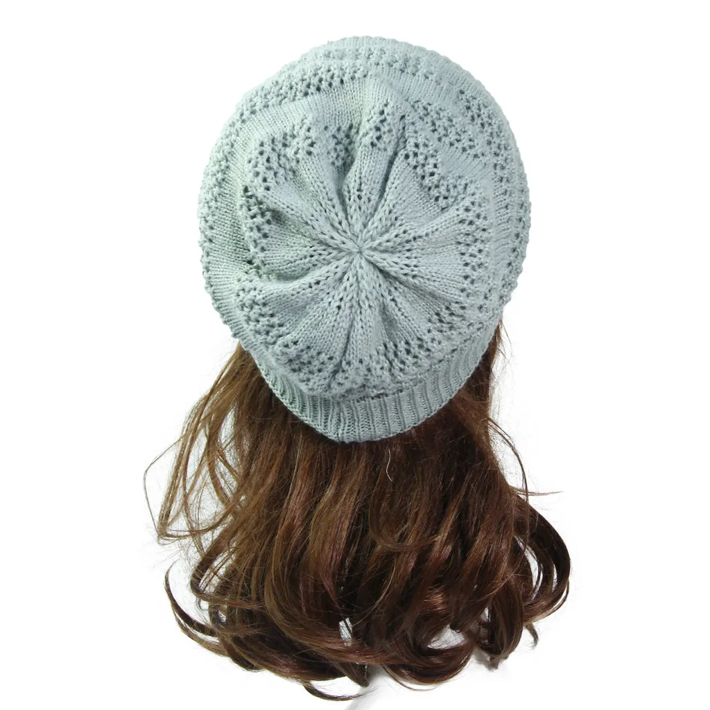 Женская модная уличная Однотонная вязанная крючком Шапка-бини