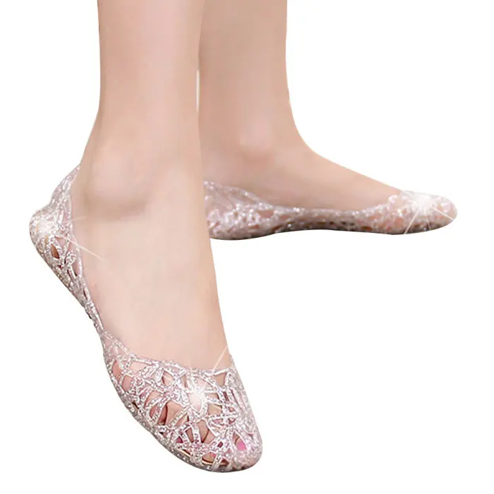 Новинка; 1 пара; женские блестящие сандалии на полой подошве; прозрачная обувь на плоской подошве; дышащие летние пляжные вечерние босоножки; XD88