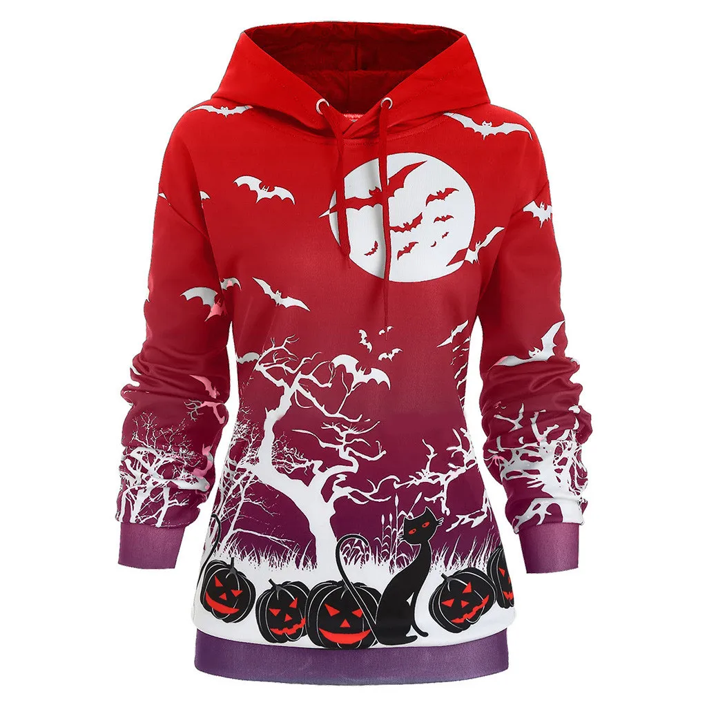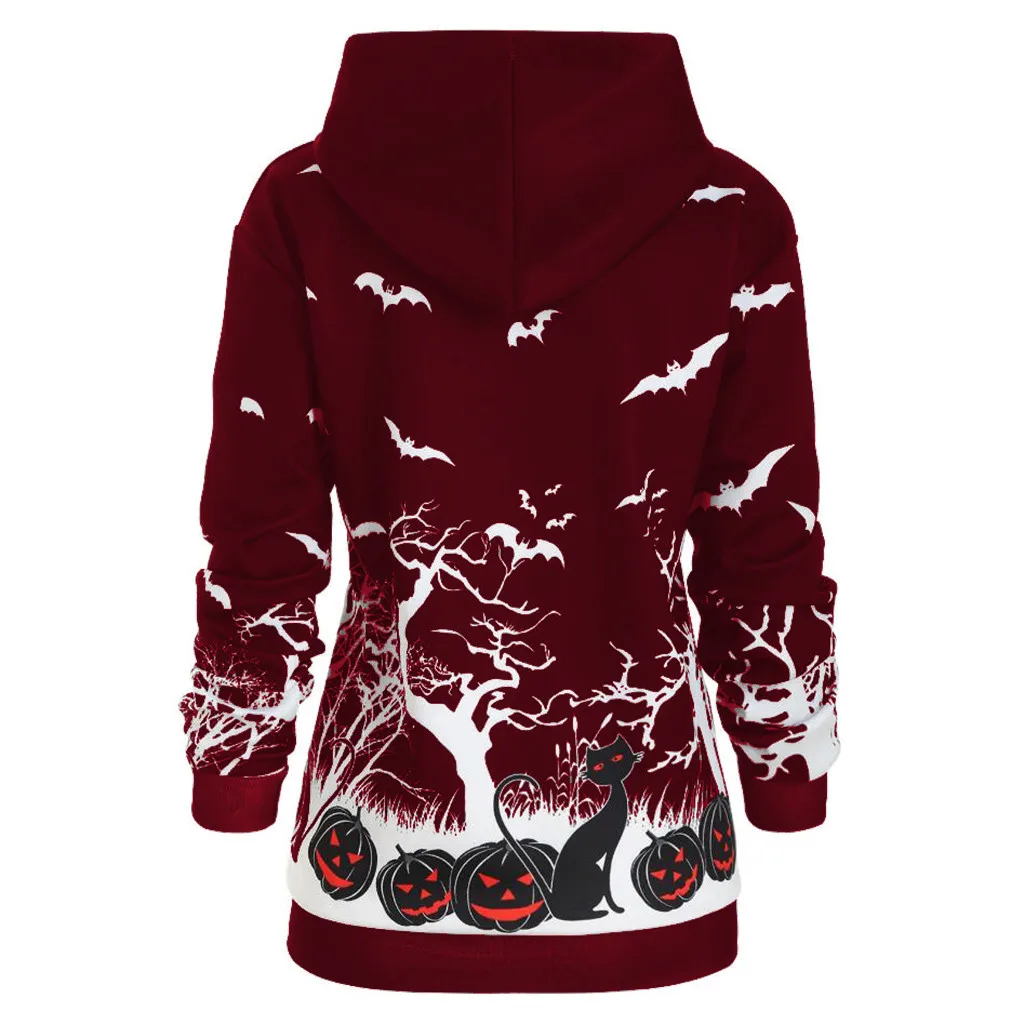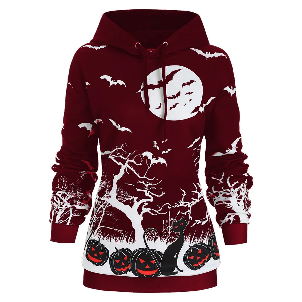 1. Особенности: длинный рукав, толстовка, толстовка, принт на Хэллоуин, пуловер, топ-блузка, стильный и модный дизайн, простой топ, модная блузка