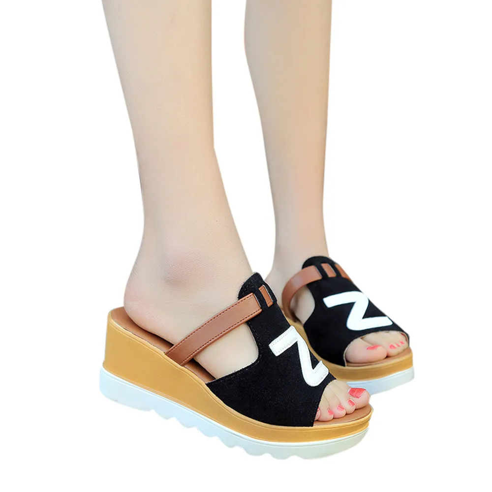 Женские модные однотонные туфли на танкетке с открытым носком; Босоножки на плоской подошве; Тапочки