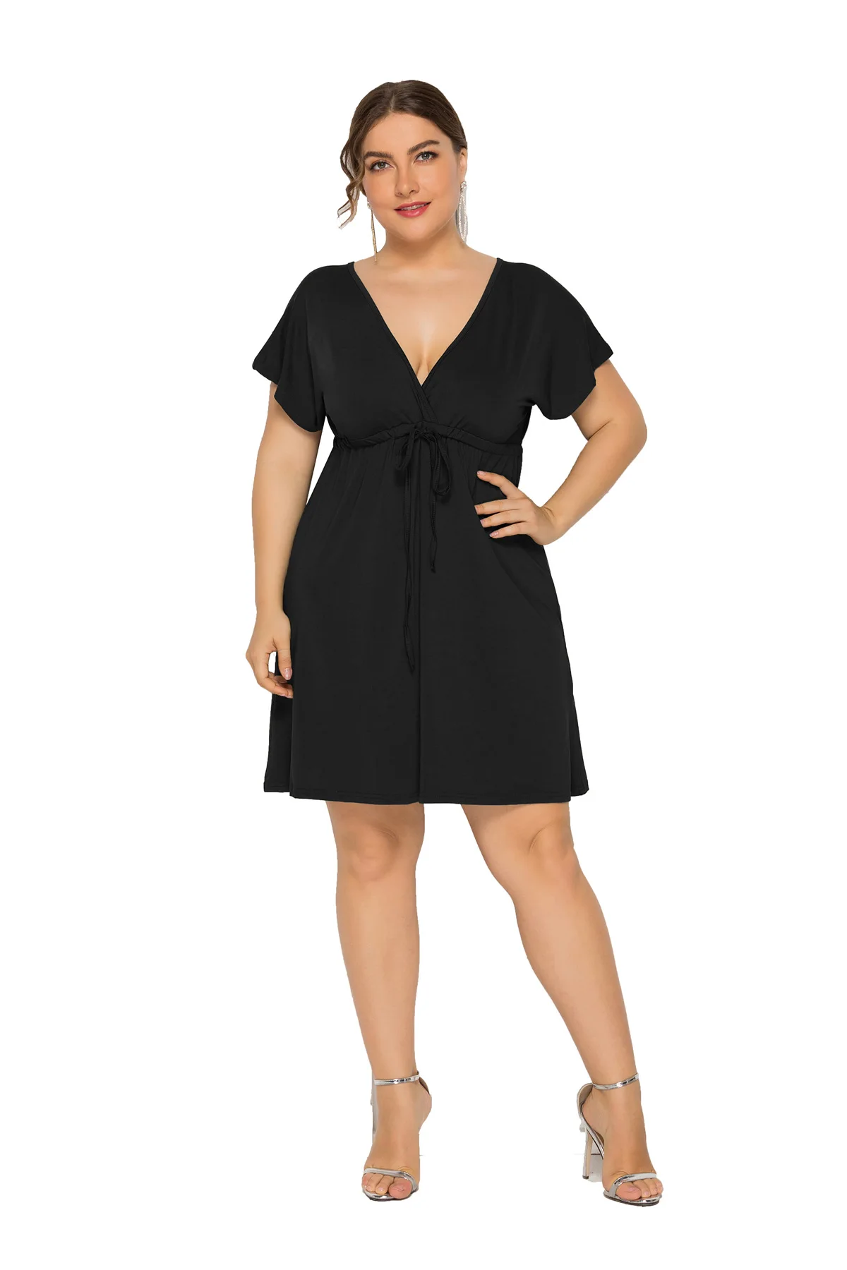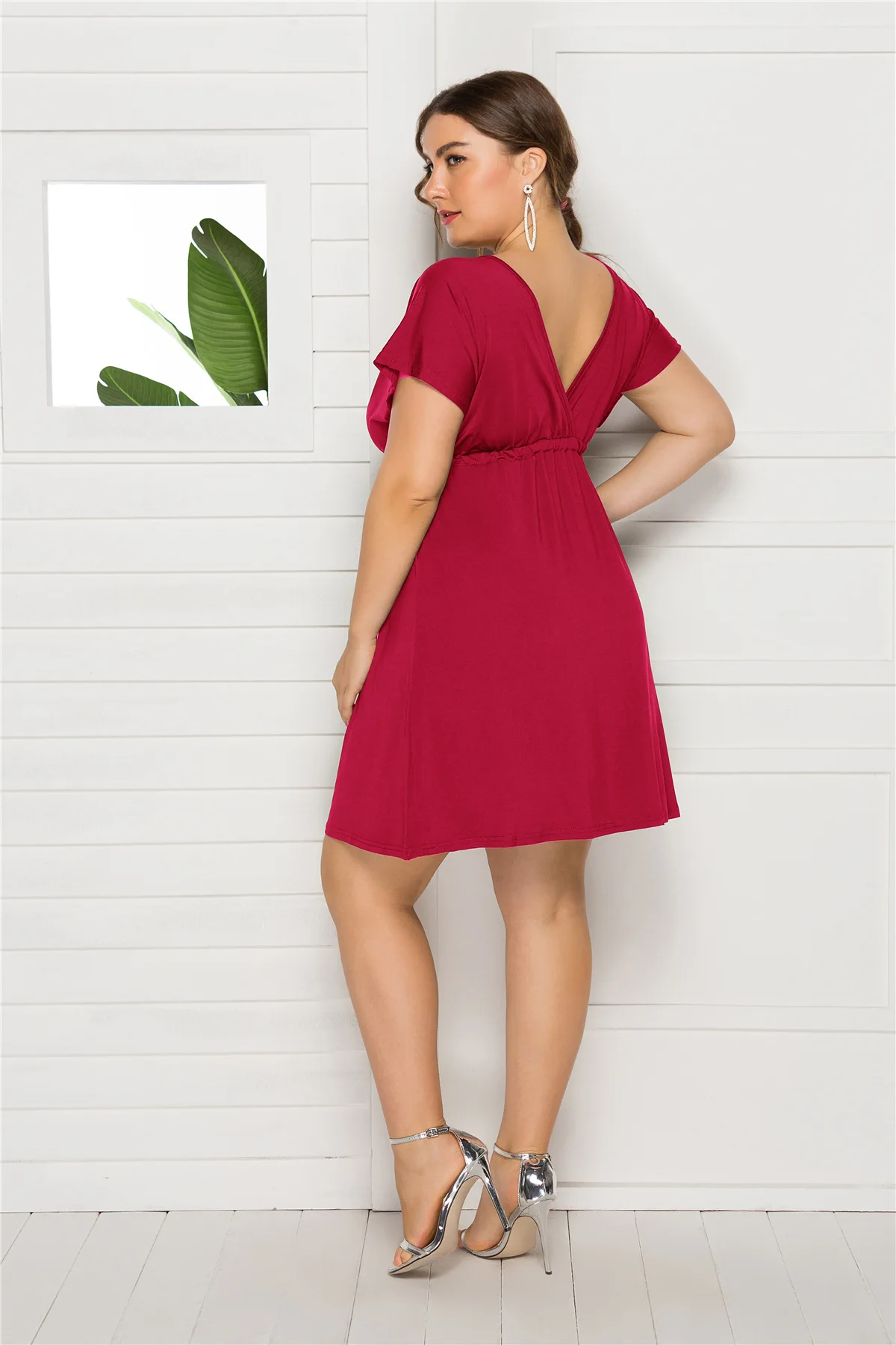Сексуальное платье размера плюс 3XL 4XL, повседневное однотонное платье выше колена, мини-платье с v-образным вырезом, летние сексуальные вечерние платья для клуба, женская одежда, элегантное платье