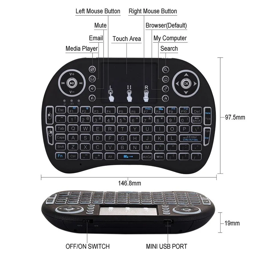 Особенности: 1,92 ключи, 2,4 ГГц Беспроводная клавиатура с сенсорной панели. 2. Высокочувствительный сенсорный шаблон, сенсорная панель DPI, регулируемые функции с подсветкой 3. Встроенный высокочувствительный умный тачпад с поворотом на 360 градусов. 4. Мини-клавиатура qworty с мультимедийными кнопками управления и кнопками управления для игр на ПК. 5. Автоматический Режим сна и автоматического пробуждения. 6. Эргономичный ручной дизайн легко носить с собой и работать. 7. Поддержка Windows, Linux, Android/Google/Smart TV и т. Д.