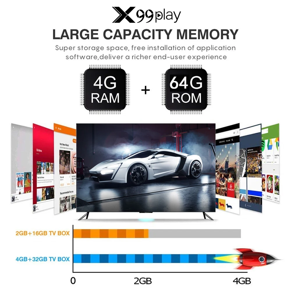 1. ОС: Android 9,0; 2. Процессор: Rockchip-RK3318 64-разрядным четырёхъядерным ARM Cortex-A53; 3. Графический процессор: Penta-core Mali-450; 4. Память (ОЗУ):2 ГБ/4 ГБ DDR (опционально); 5. Память (ПЗУ):16 Гб/32 ГБ/64 Гб EMMC (опционально); 6.LAN:Ethernet:10M/100M; 7. WI-FI: 2,4 ГГц/5 ГГц двойной WI-FI (802.11b/g/n); 8. Поддержка H.265, 4K 60pfs, HD 2,0, USB3.0.