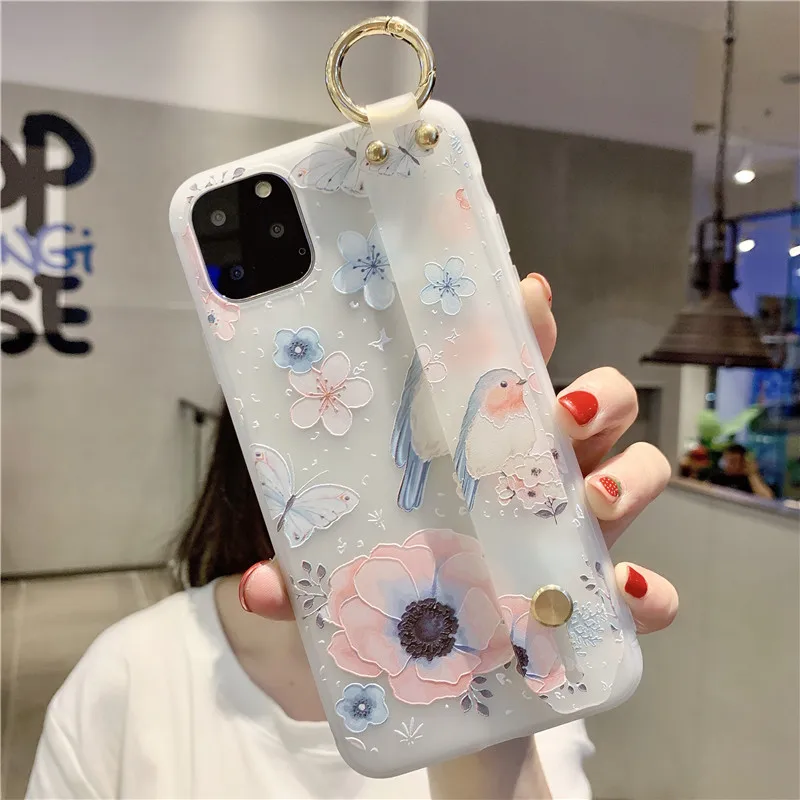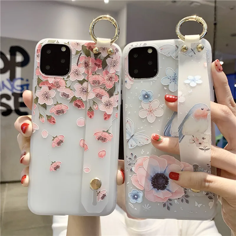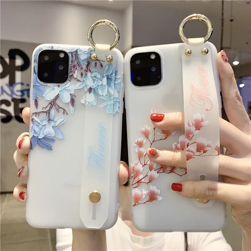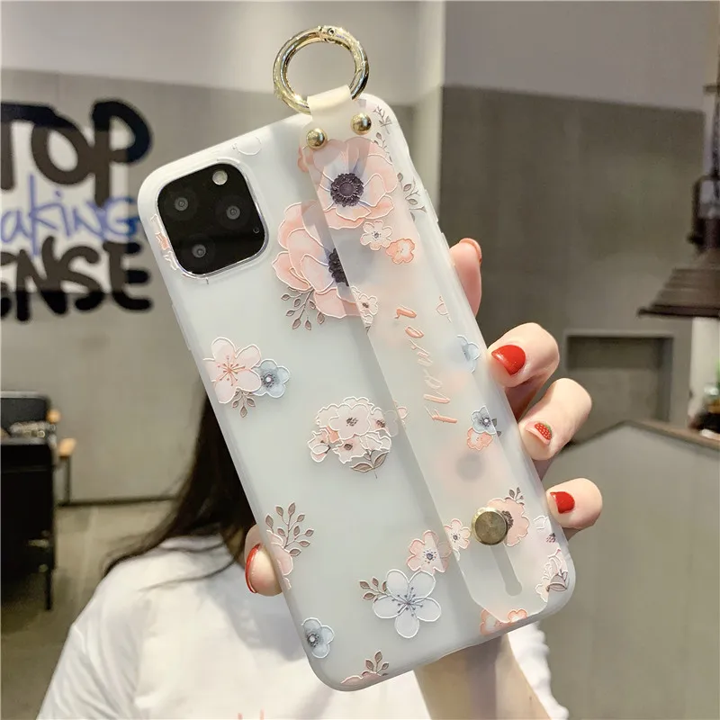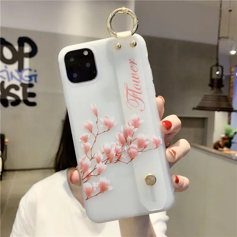 Чехол для iPhone 11 Pro Max, мягкий чехол для телефона из ТПУ, чехол для Etui iPhone 11 8 Plus 6 6s 7 X XR Xsmax, чехол на запястье с цветком