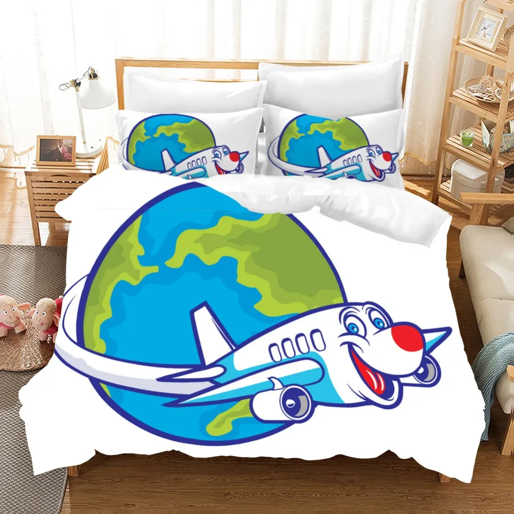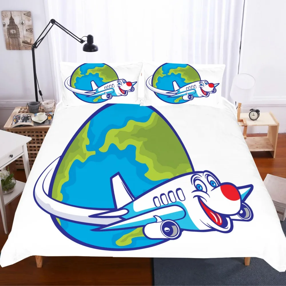 Мультфильм постельных принадлежностей самолет путешествия пододеяльник наволочка из микрофибры королева King Size для маленьких мальчиков Детский комплект постельного белья, пододеяльник, 2/3 предмета в комплекте