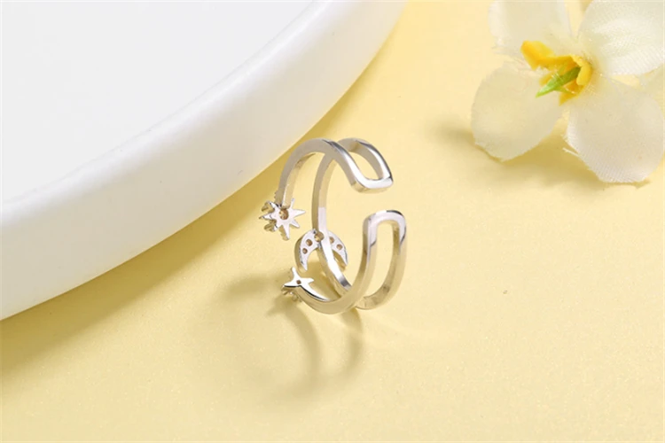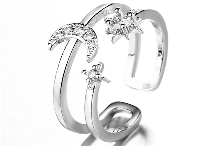 Новая коллекция, кольцо Moon Star с кубическим цирконием, регулируемое, Настоящее серебро 925 пробы, Anillos Plata, обручальные кольца для женщин и девочек