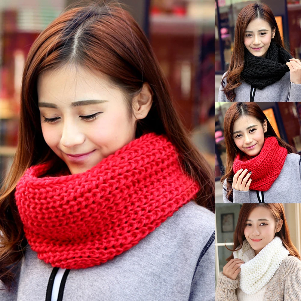 Осень Зима Мода унисекс, однотонный теплый пуловер шейный платок пара шарф