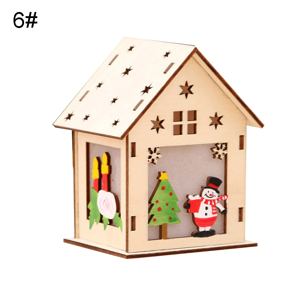 Wooden House LED Light Lamp Pendant Hanging DIY Christmas Tree Window Ornament