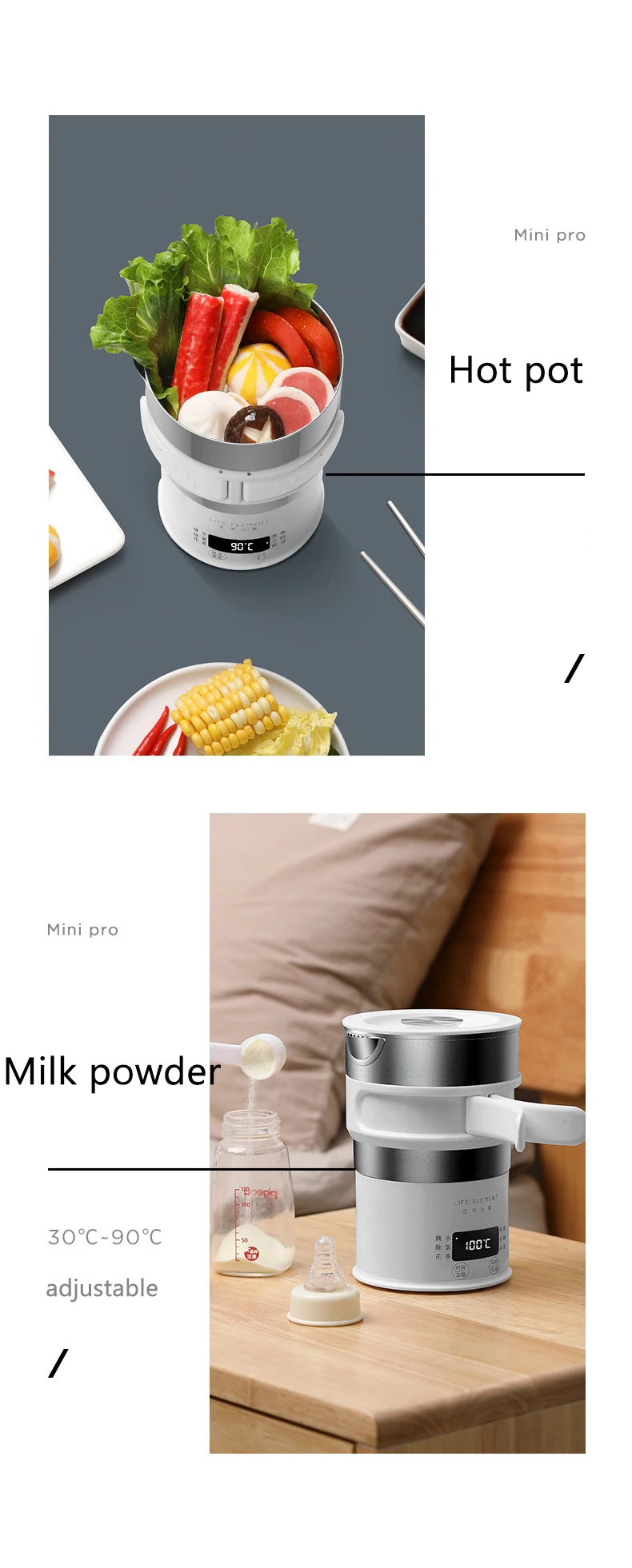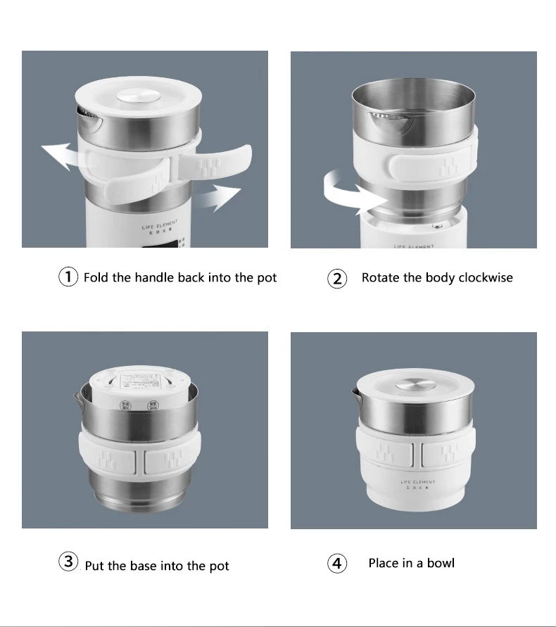 100-240 В многофункциональный электрический складной сосуд портативная чайная кастрюля сотейник из нержавеющей стали для путешествий Съемная чашка для нагрева воды