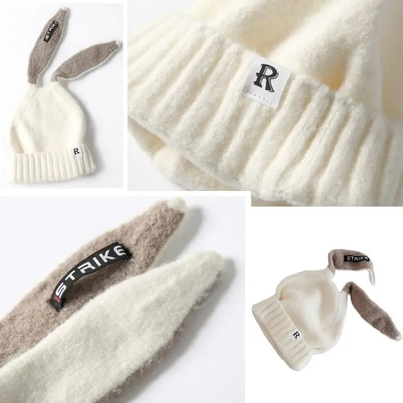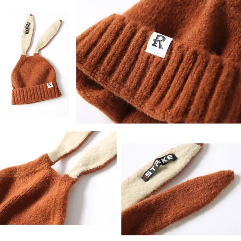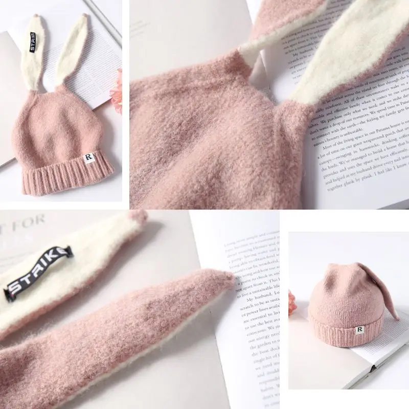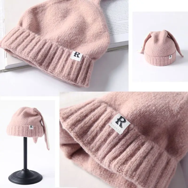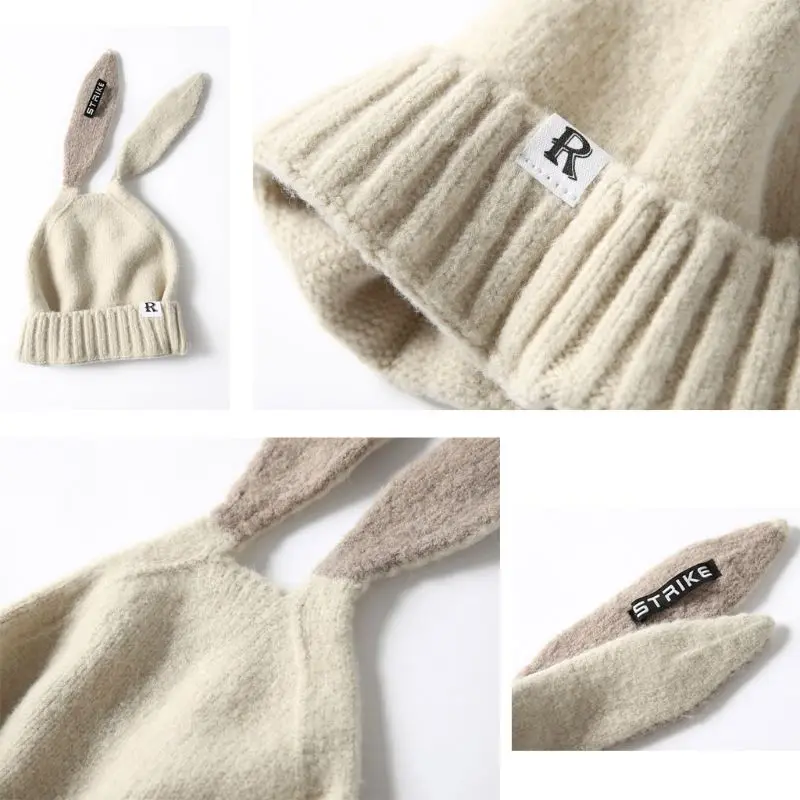 Детская зимняя теплая вязаная шапка для девочек и мальчиков, милый кролик длинное ухо, Шапка-бини на осень, 2019