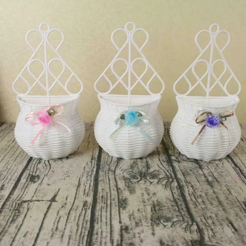 Пластиковые цветы, растения Висячие корзина-ваза из ротанга стены висят маленький искусственный цветок в горшке из ротанга корзина для украшения дома цвет случайный