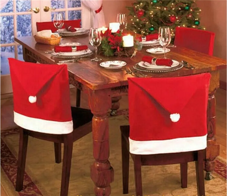 Рождественские украшения для дома, Санта-Клаус, красная шляпа, Чехол для стула, вечерние, праздничные, рождественские