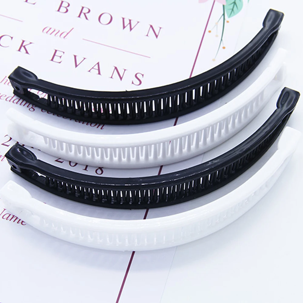 Материал: пластик Тип: заколка Длина: 15 см Цвет: белый, черный Особенность: в форме банана Посылка 1 заколка для волос