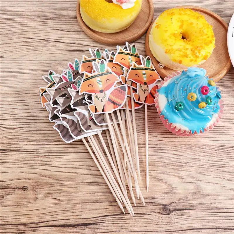 24 шт торт Топпер животные индийский мультфильм декоративные кекс выбирает вставка для торта вечерние принадлежности для празднования Дня благодарения