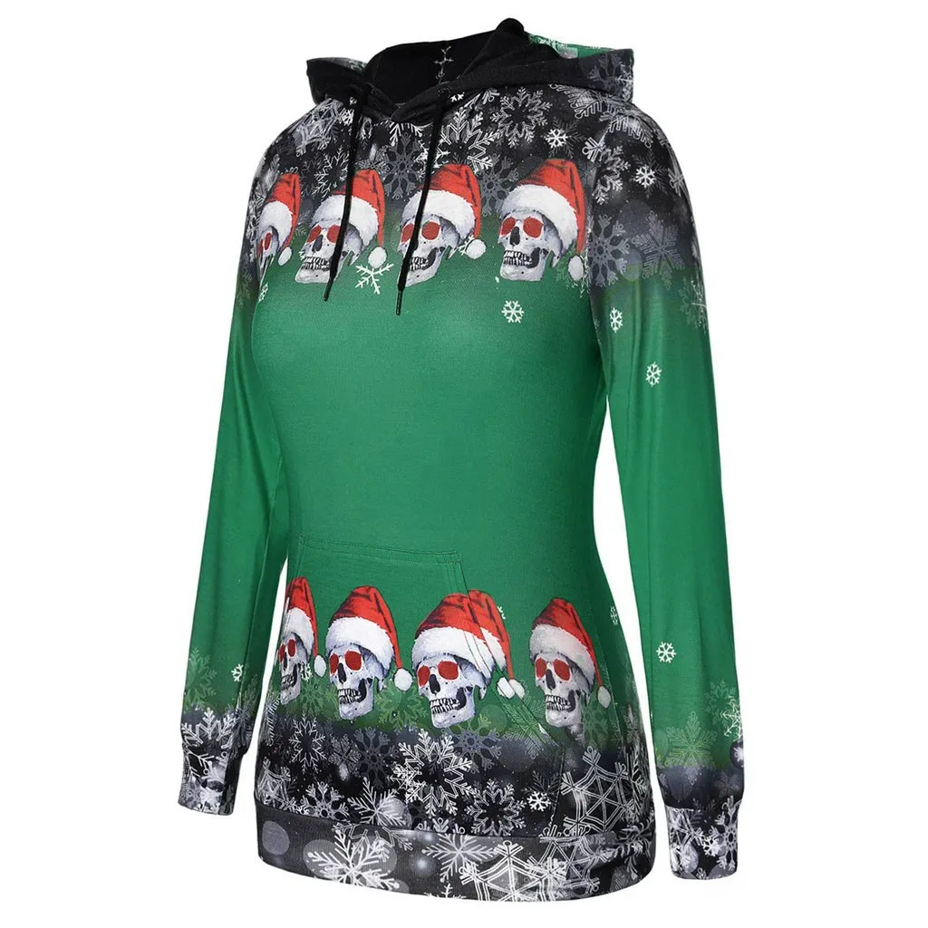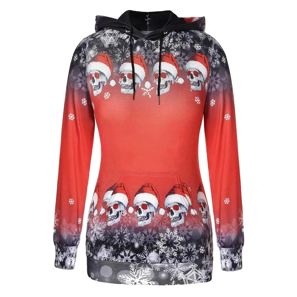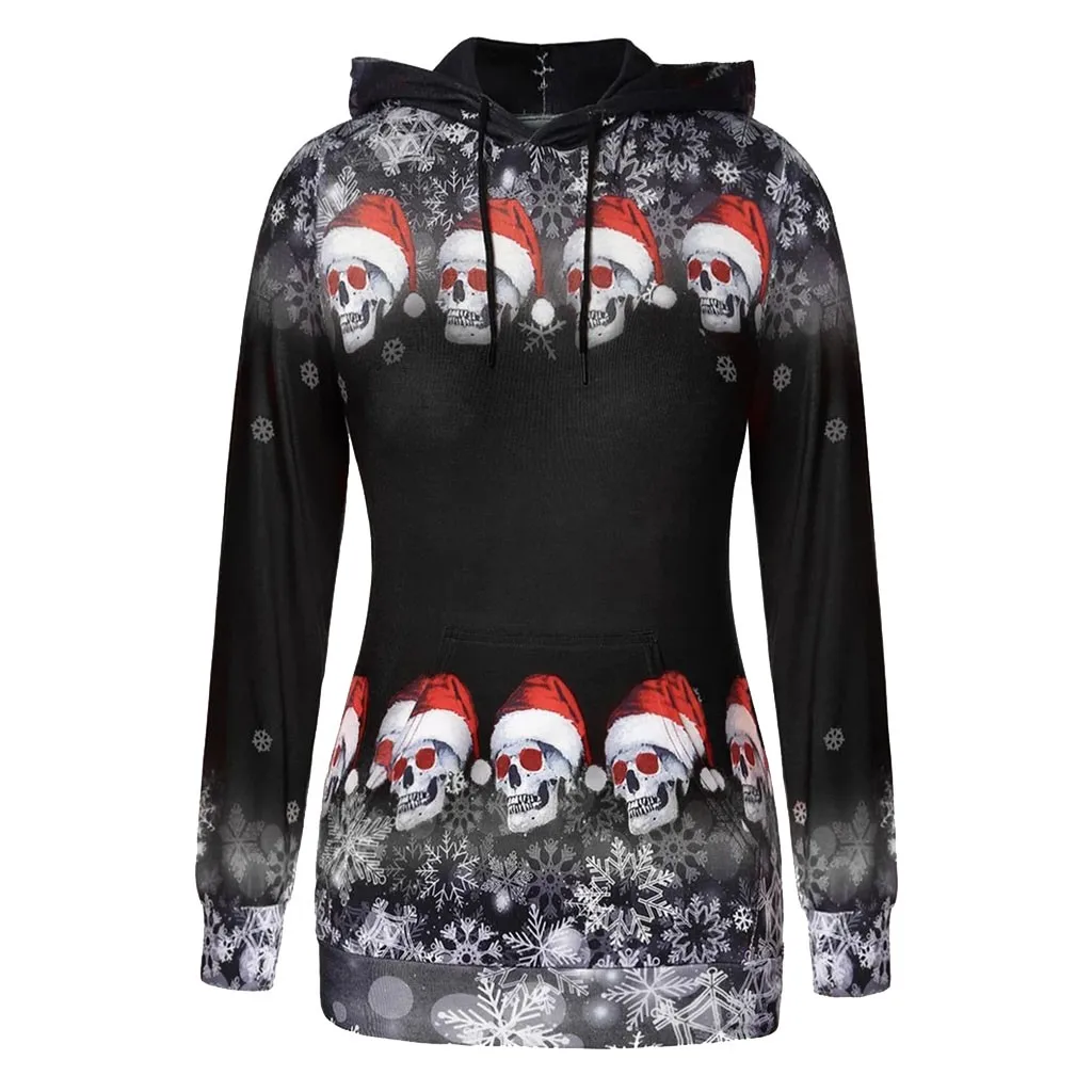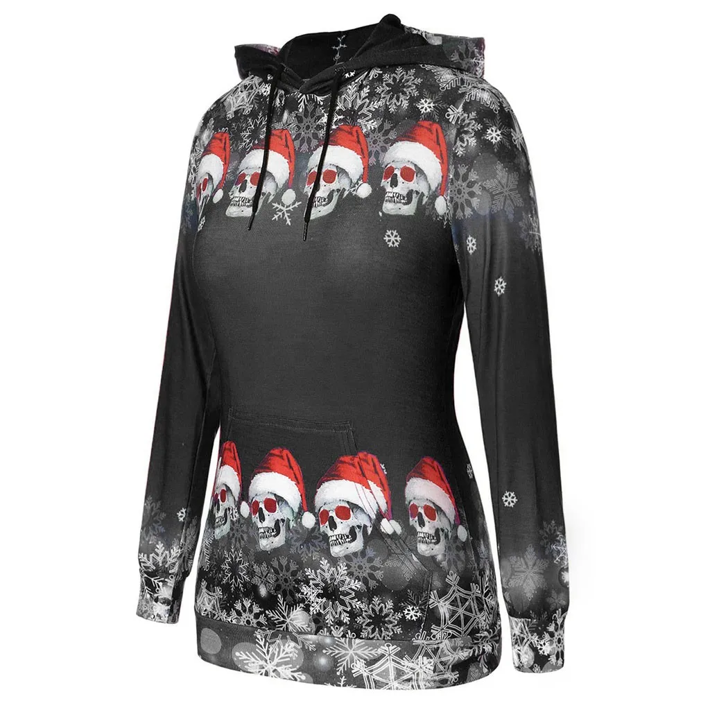 Для женщин Рождественские топы для девочек; Пуловер с принтом снежинок и черепов; Толстовка с капюшоном