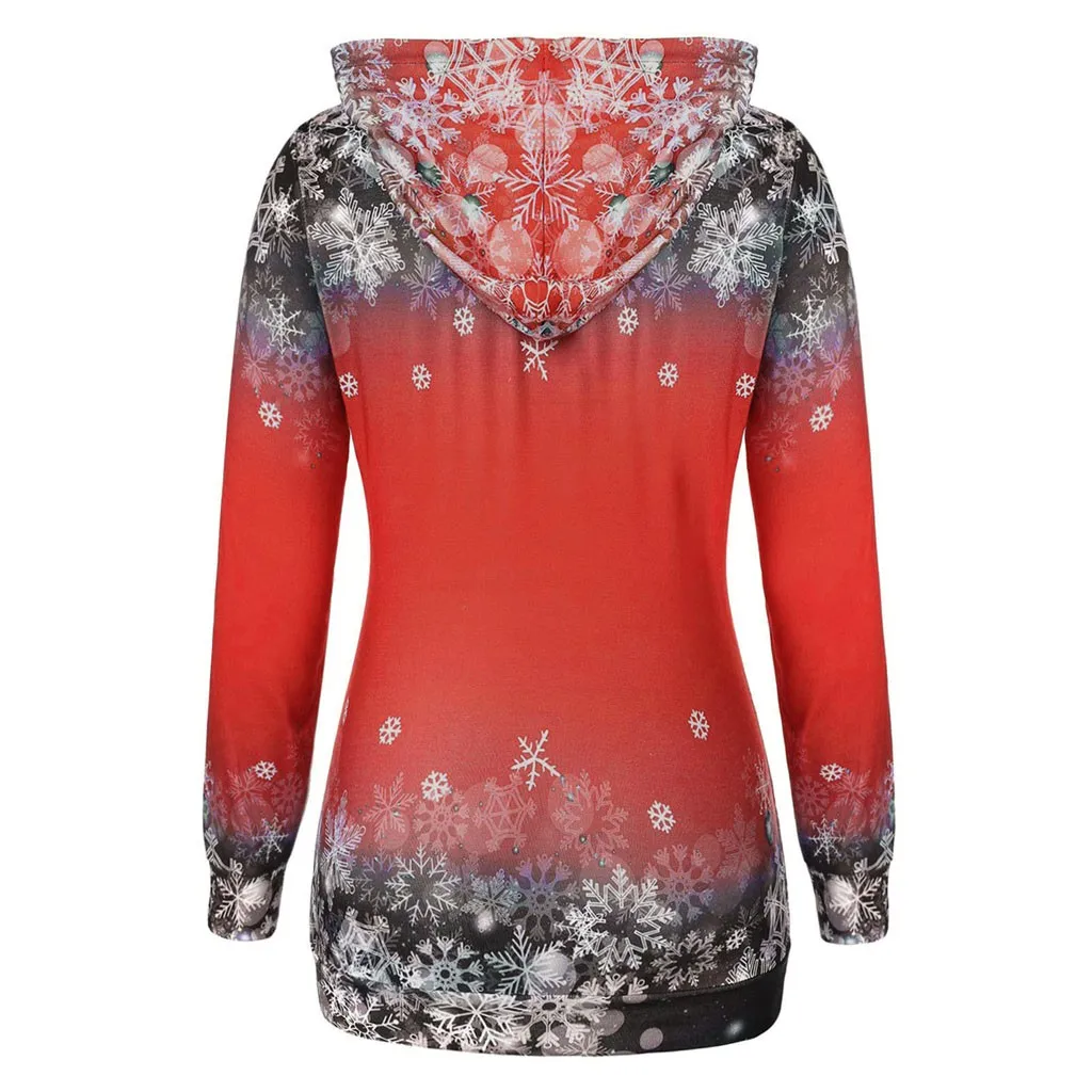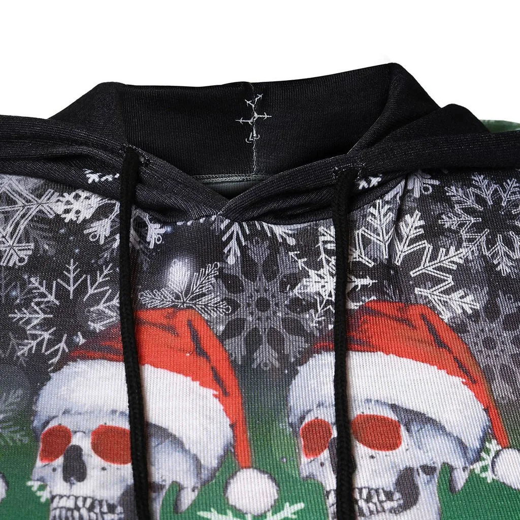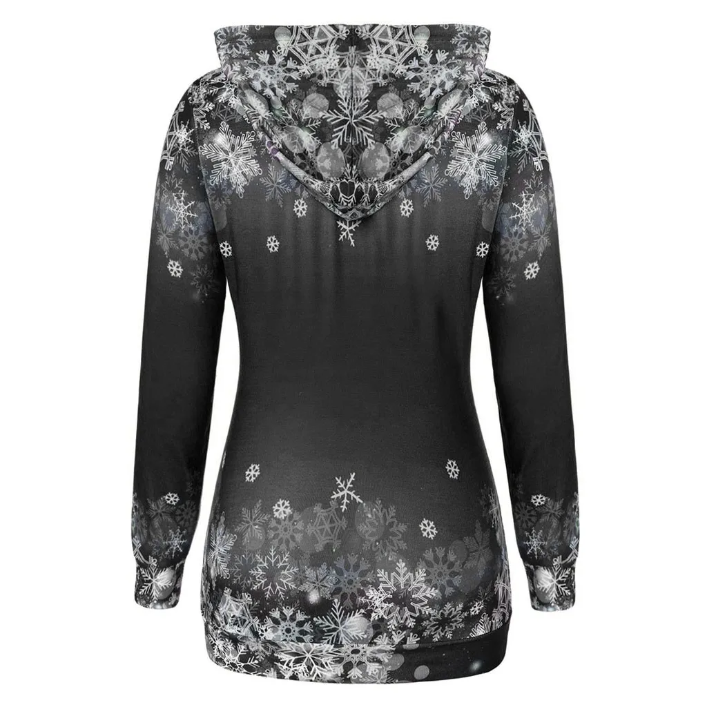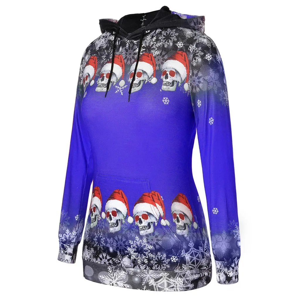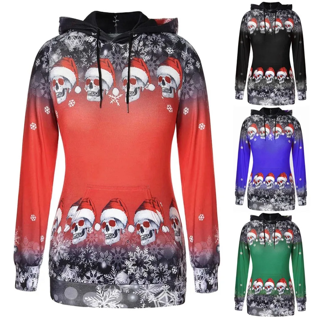 Для женщин Рождественские топы для девочек; Пуловер с принтом снежинок и черепов; Толстовка с капюшоном