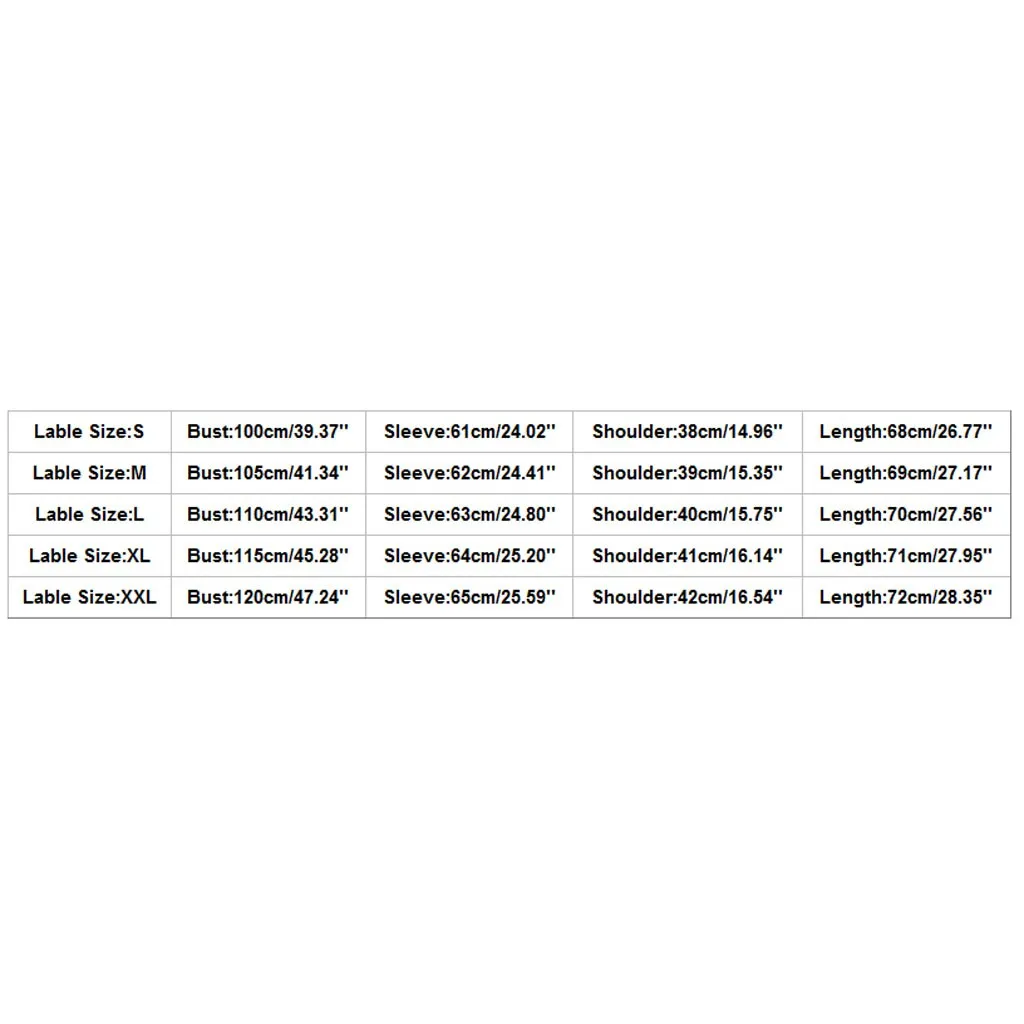 Свободный размер Бюст Рукав Плечо Длина S 100 см/39,37'' 61 см/24,02'' 38 см/14,96'' 68 см/26,77'' М 105 см/41,34'' 62 см/24,41'' 39 см/15,35'' 69 см/27,17'' L 110 см/43,31'' 63 см/24,80'' 40 см/15,75'' 70 см/27,56'' XL 115 см/45,28'' 64 см/25,20'' 41 см/16,14'' 71 см/27,95'' XXL 120 см/47,24'' 65 см/25,59'' 42 см/16,54'' 72 см/28,35''