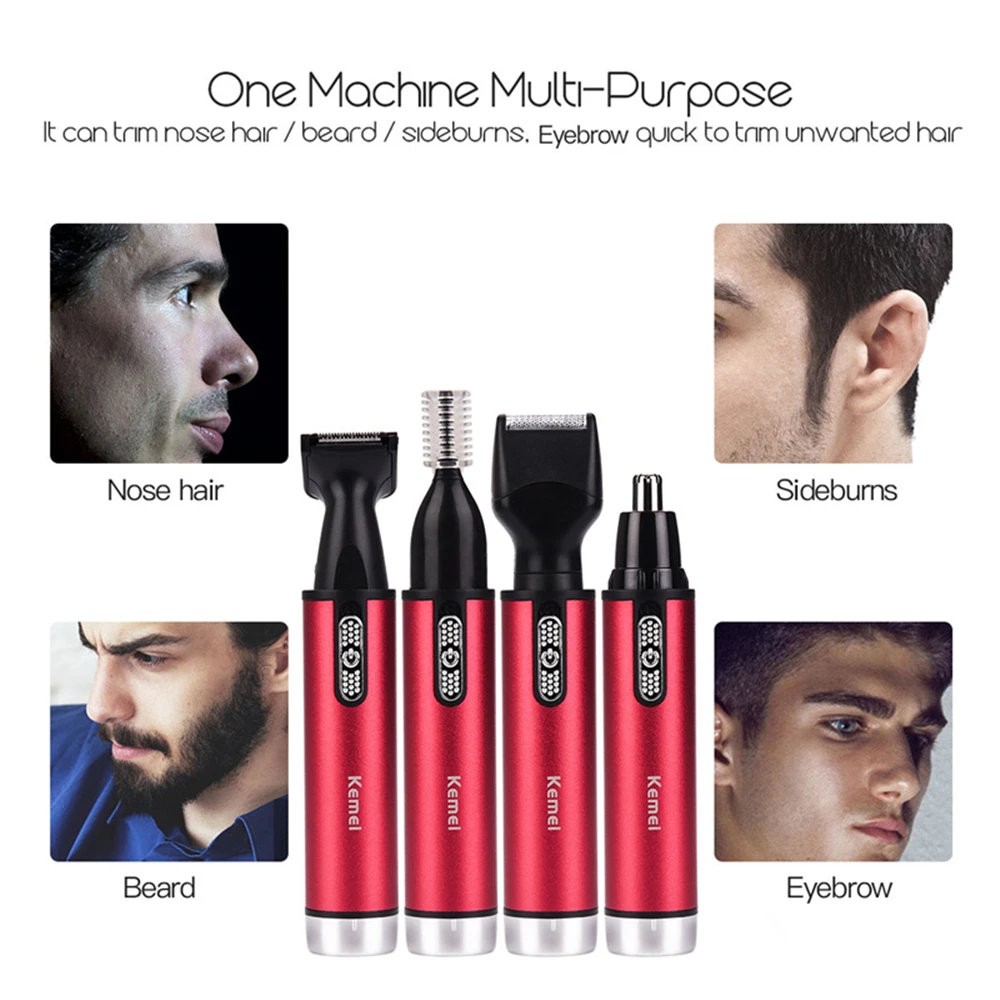 Одна машина многофункциональная, с этими насадками для лезвий, она используется для волос в носу, ушей, бакенбард, бровей, стрижки бороды. Острые лезвия из нержавеющей стали, безопасная и удобная резка, не повреждая кожу, и не застревают волосы. 4 лезвия триммера моются и заменяются, вы можете удалить и краску лезвия после использования, здоровые и гигиеничные. Оснащен базой для удобного хранения. Подходит как для мужчин, так и для женщин. Портативный светильник идеально подходит для использования дома или в путешествиях.