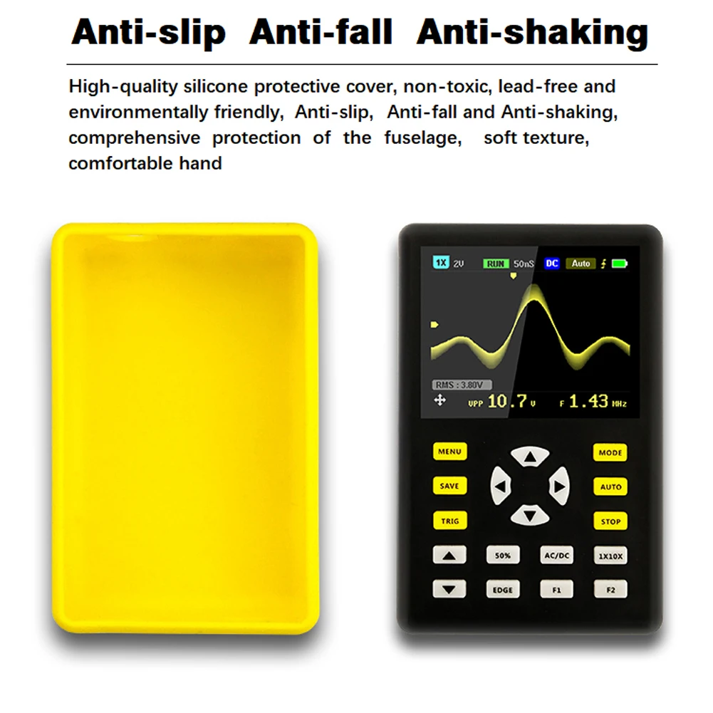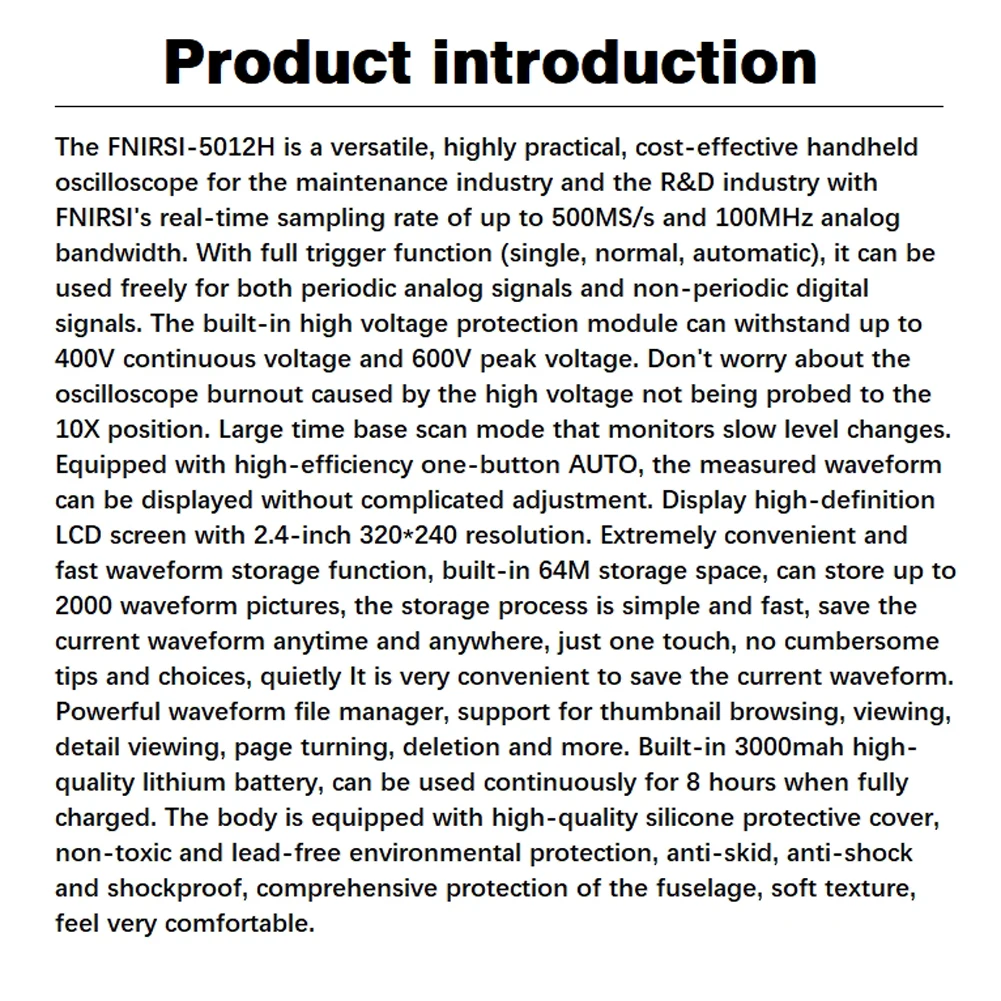 -Встроенный модуль защиты высокого напряжения может выдерживать до 400 В Непрерывное напряжение и 600 в пиковое напряжение. Не беспокойтесь о выгорании осциллографа, вызванном высоким напряжением, не проложенным в положение 10X.