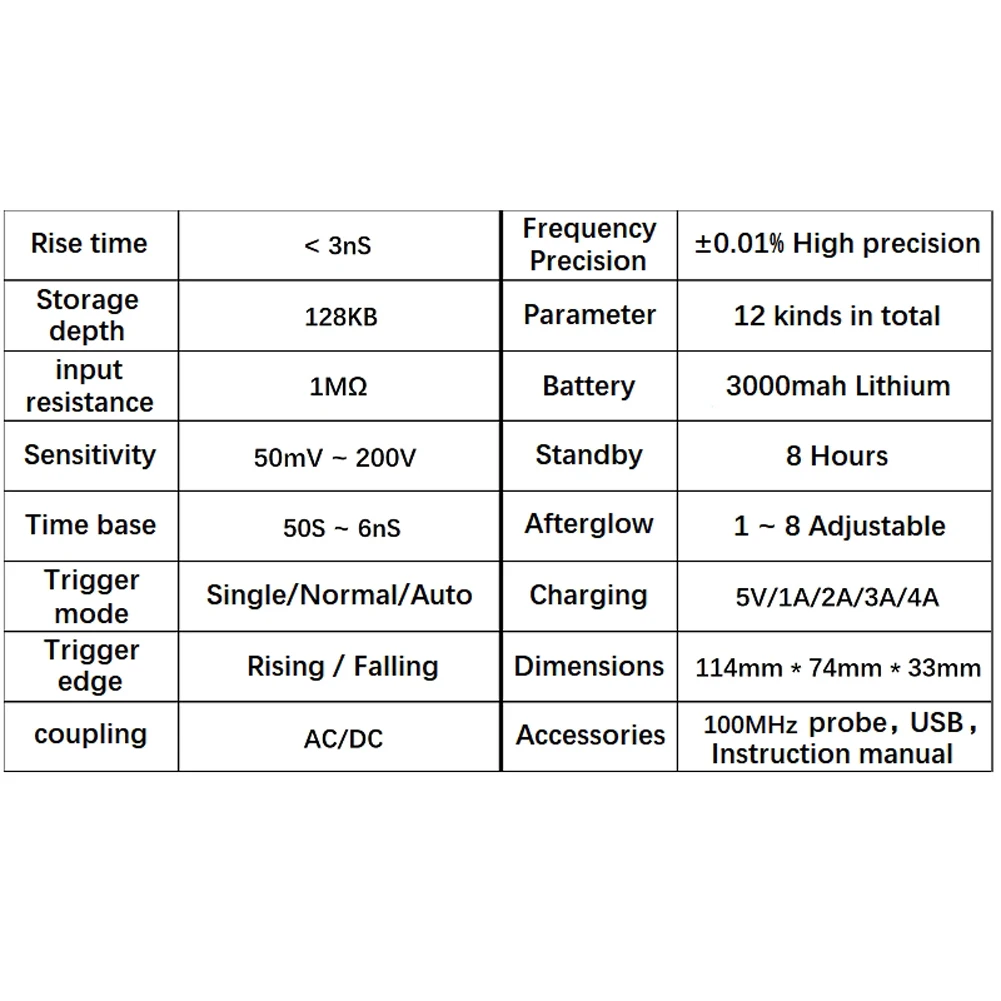 -Чрезвычайно удобная и быстрая функция хранения сигналов, встроенный объем памяти 64 м, может хранить до 2000 изображений сигналов, процесс хранения прост и быстр, сохраните форму тока в любое время и в любом месте, просто одно касание, никаких громоздких подсказок и вариантов, бесшумно это очень удобно, чтобы сохранить форму тока.