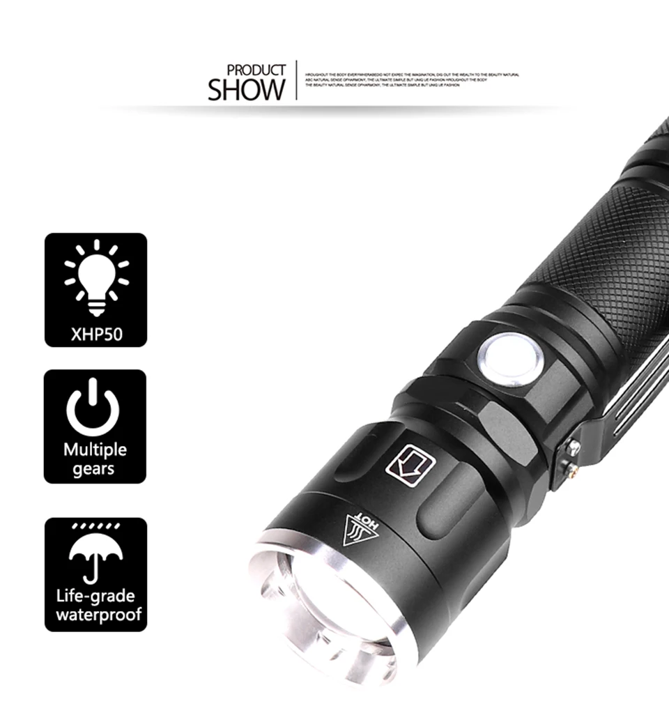 Бренд: Litwod Модель: 09 Светильник источник: XHP70 Цвет внешнего вида: серебристо-серый 5-скоростной режим: 100%-50% флеш-накопителей Размер: 160 мм × 40 мм × 34 мм Питание: 1 аккумулятор 26650 или 1 аккумулятор 18650 Время освещения: 18650 батарея 3-6 часов; 26650 батарея: 6-12 часов Метод зарядки: микро USB Прямая зарядка Диапазон: от 200 до 500 метров Зум: зум-объектив (увеличение/уменьшение Водонепроницаемый Рейтинг: IPX4 Вес: 210 грамм (без аккумулятора) Материал: T6063-T6 авиационный алюминий Использование: семья, охота, патрульная, строительство, ходьба, техническое обслуживание, поиск и спасение