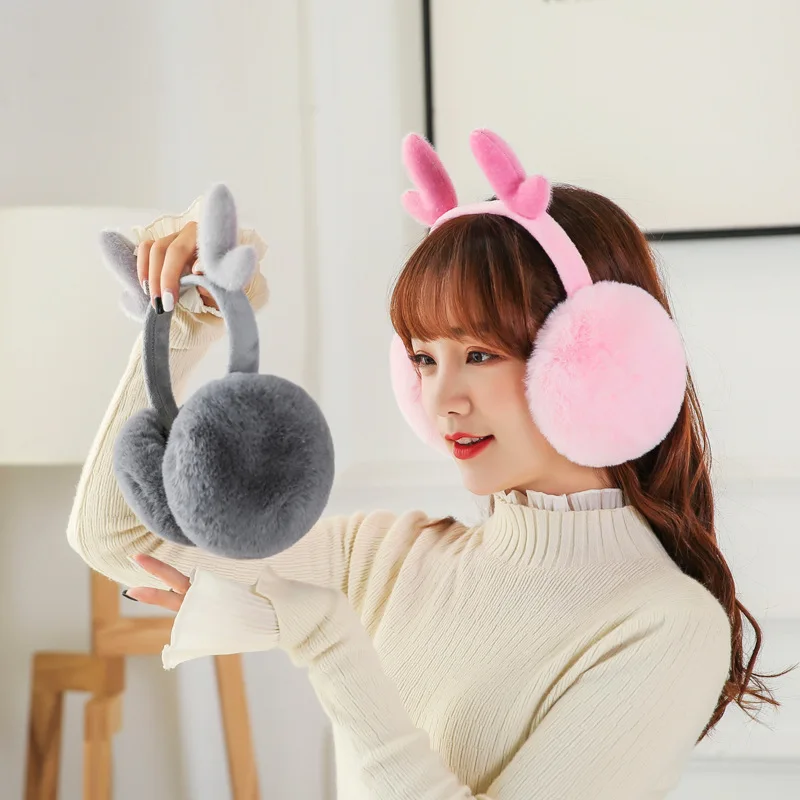 Модные складные наушники-рога зимние теплые мягкие плюшевые пушистые наушники