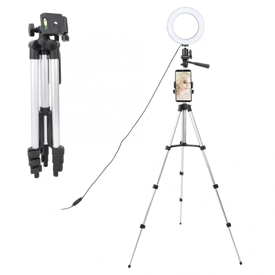 6 дюймов Dimmable светодиодный видео кольцо свет камера лампа комплект с штативом держатель мобильного телефона USB порт