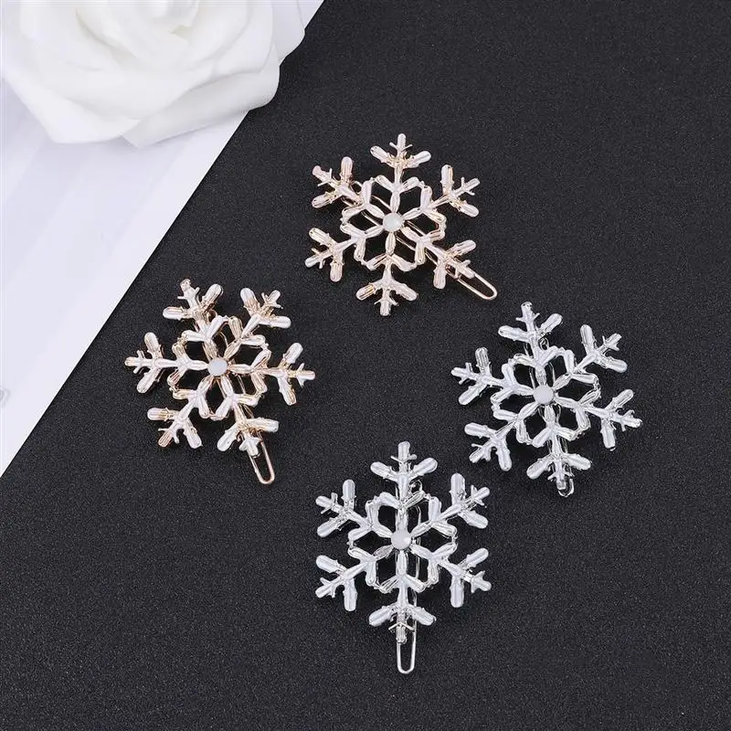 -4 блестящих заколки для волос со снежинками: изготовлены из превосходного сплава для длительного использования.