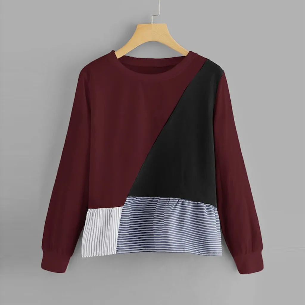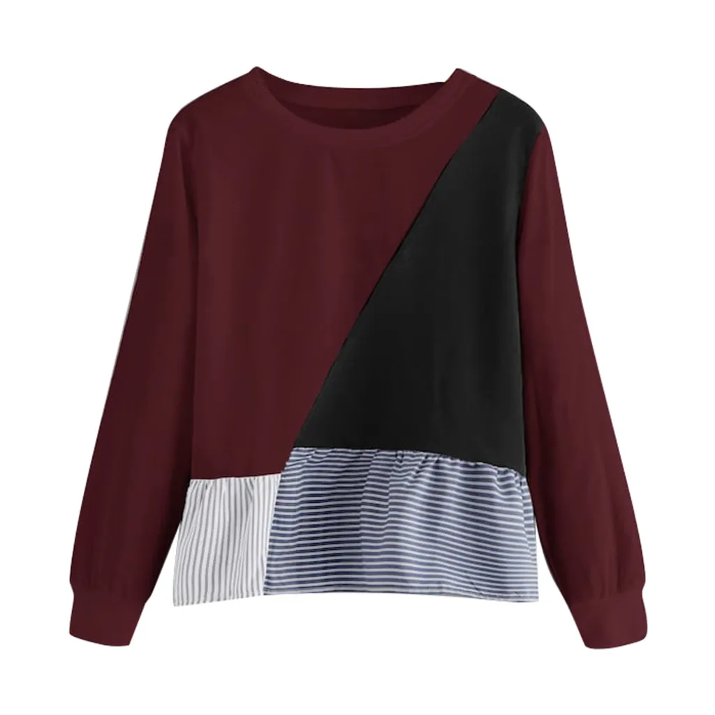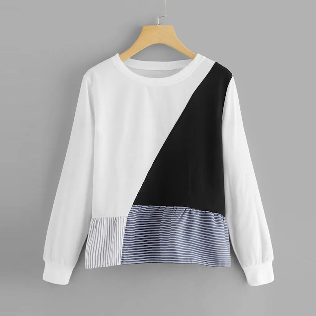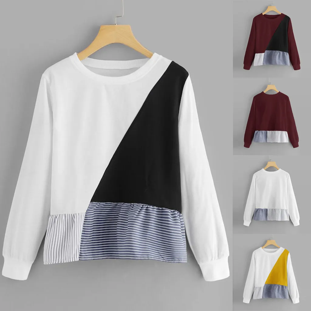 1. Особенности: Повседневная Толстовка, круглый вырез, длинный рукав, пуловер, футболка, пэчворк, повседневные топы, повседневная одежда, стильный и модный дизайн, осенняя и весенняя Повседневная блузка.