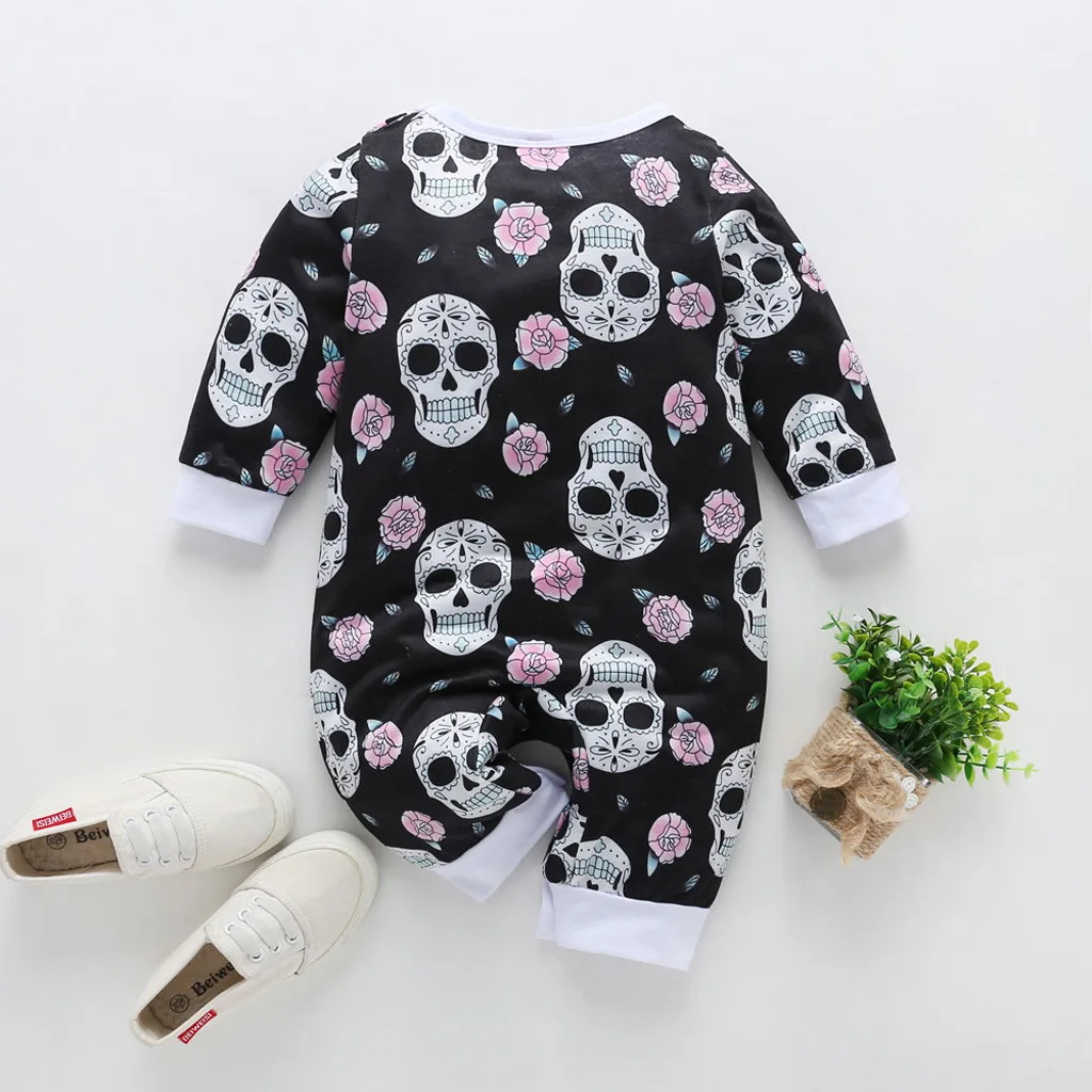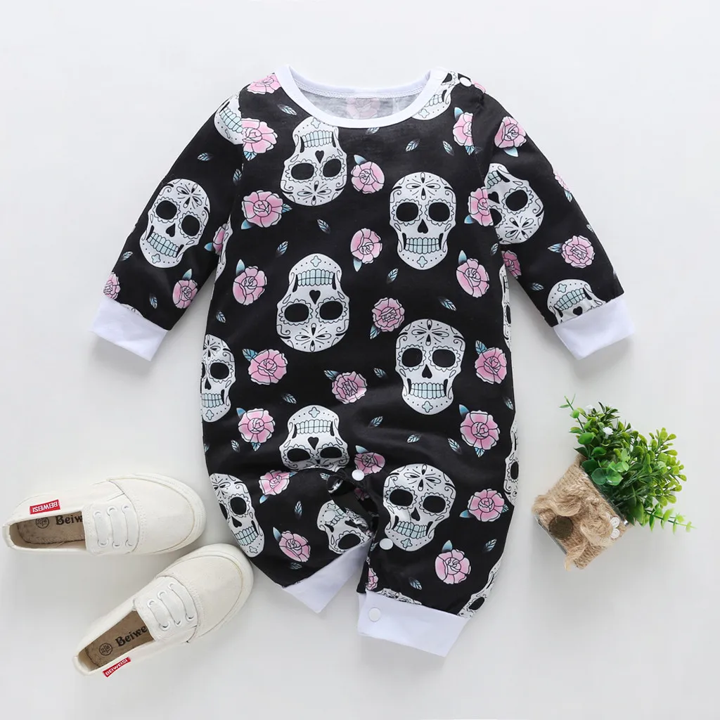 Хэллоуин с черепом для новорожденных мальчиков и девочек Комбинезон ромпер комбинезон