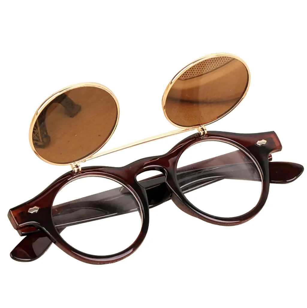 Стимпанк Goth очки Ретро Флип Круглые Солнцезащитные очки винтажные