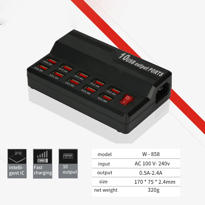 Разъем зарядного устройства имеет мощную конструкцию интерфейса USB 10 для удовлетворения потребностей зарядки ваших десяти устройств синхронно. Зарядное устройство для трансмиссии стабильное и скорость передачи быстрая.
