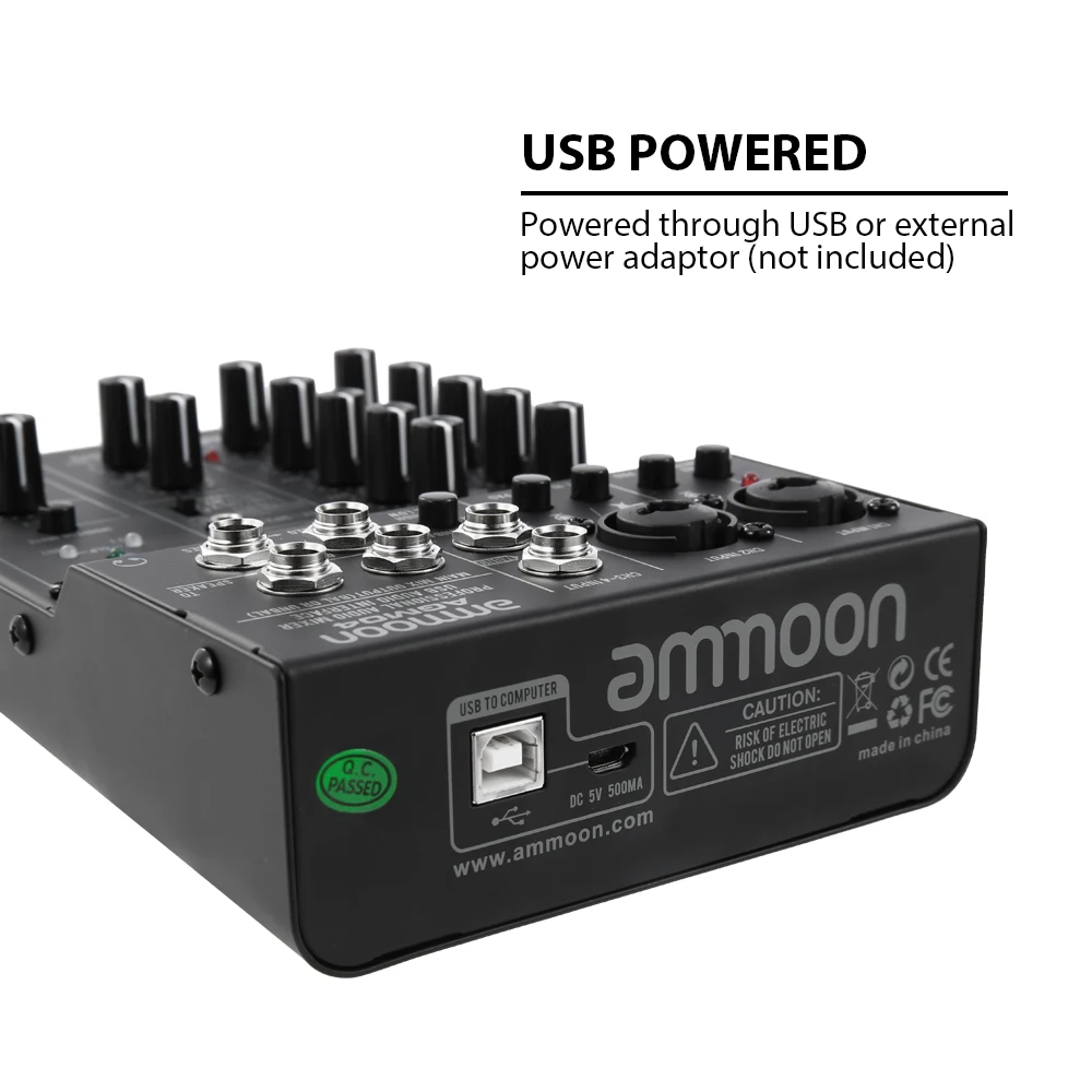 4-канальный видеорегистратор компактный размер микшерный пульт предназначен для домашней студийной записи, сети в прямом эфире, караоке, и т. д.; 5V низшее напряжение источника питания дизайн, может быть питание от компьютера, адаптер питания или блок питания 5 в через разъем USB 2,0 или разъем Micro USB.