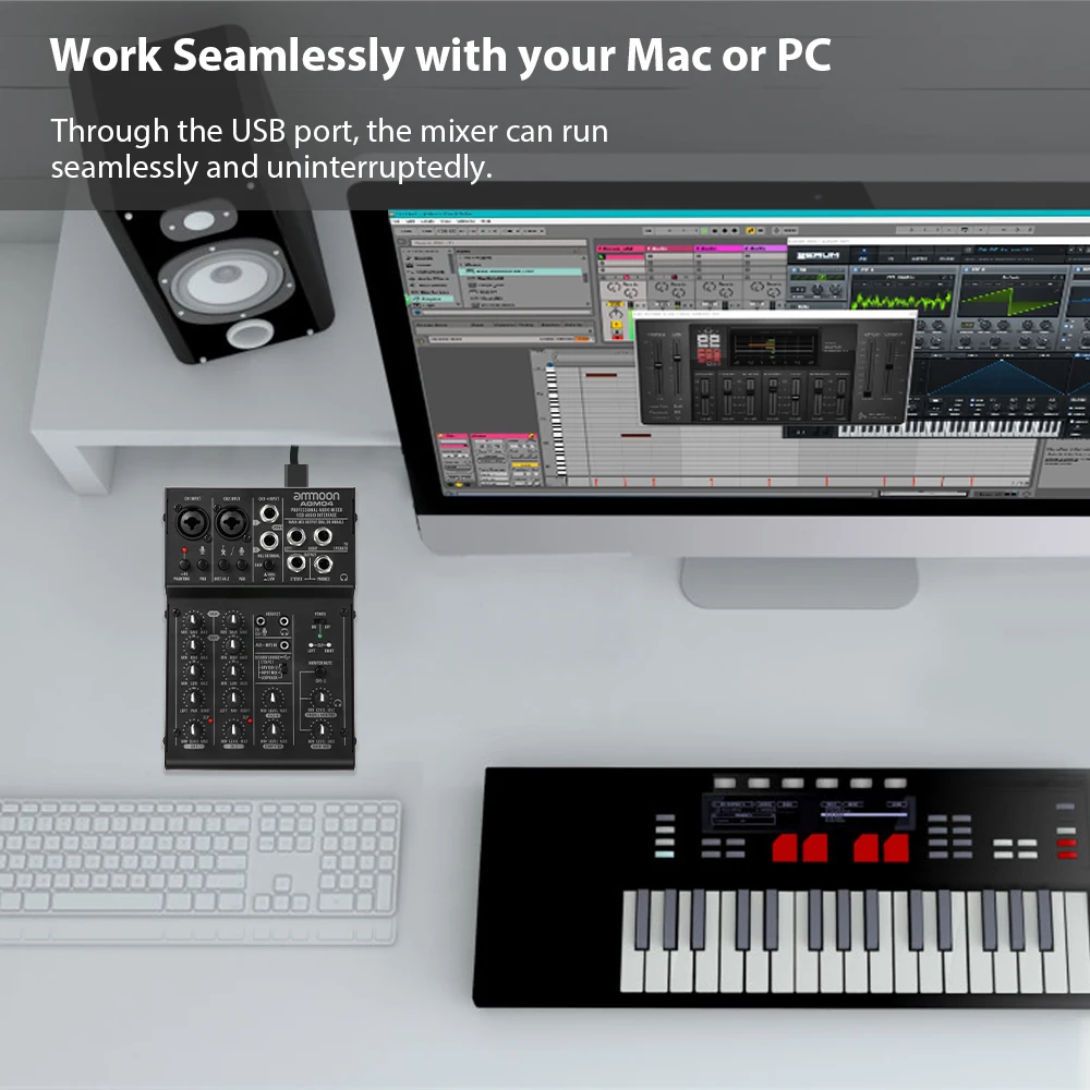 При подключении миксера к компьютеру с помощью прилагаемого кабеля USB 2,0 поставщики компьютеров подключаются к миксеру, в то же время Аудиоданные могут быть отправлены между миксером и компьютером.