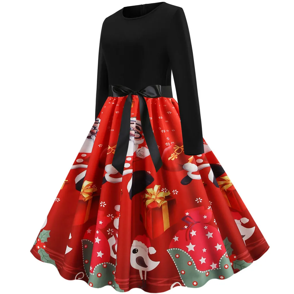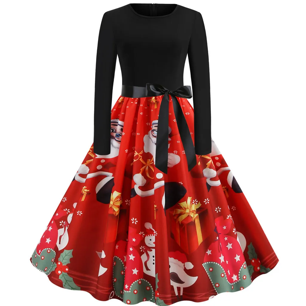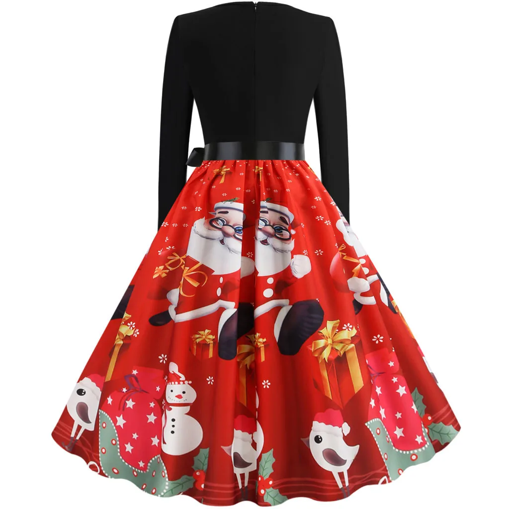 Женская обувь в винтажном стиле, с длинным рукавом на Рождество 1950s домохозяйки Вечеринка платье для выпускного вечера
