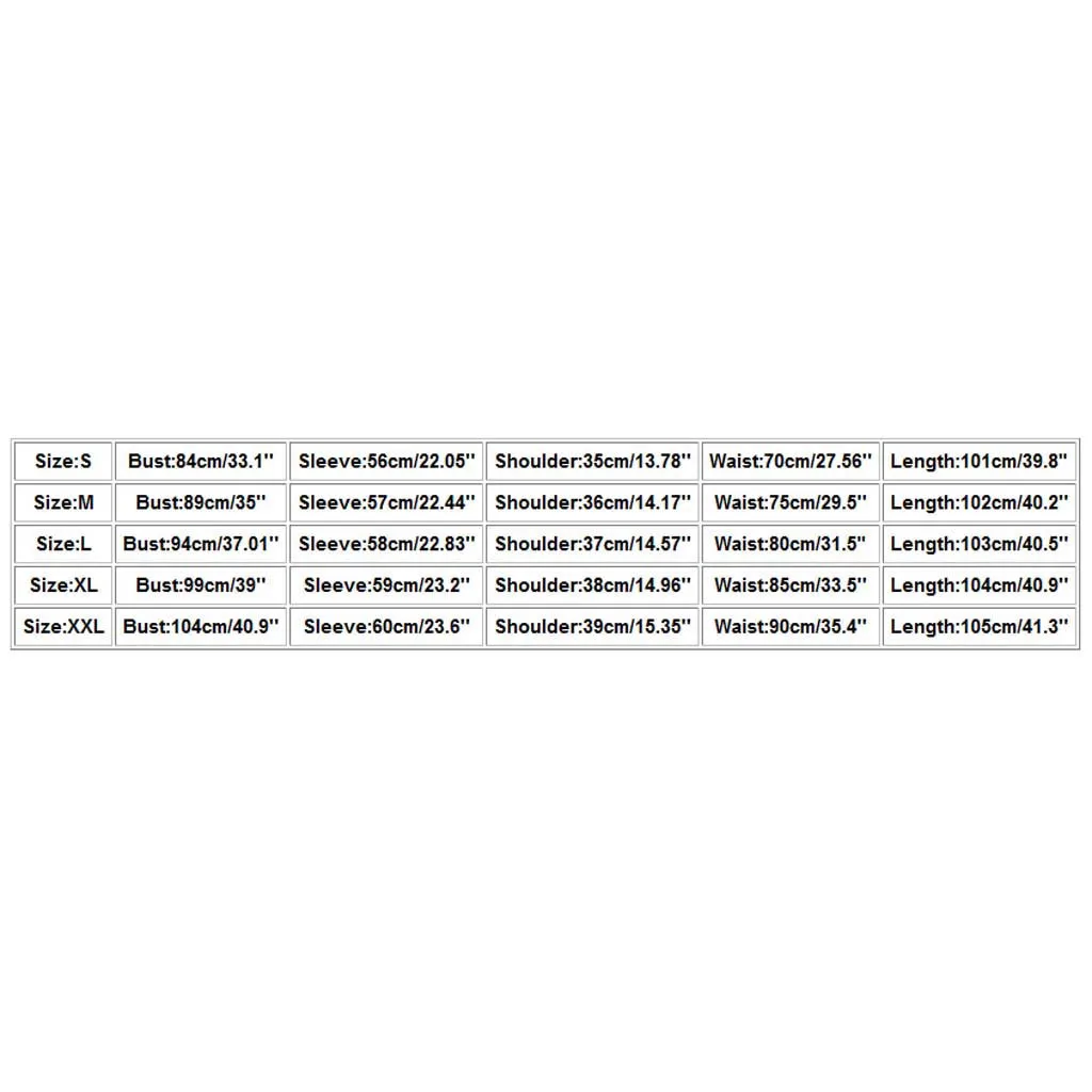 Примечание: Из-за возможных физических различий между различными мониторами фотография товара является только иллюстрацией и может не точно отражать фактический цвет полученного товара РазмерыОбхват грудиРукаваСумка на плечоОбхват талииДлинаS84 см/33,1''56 см/22,05''35 см/13,78''70 см/27,56''101 см/39,8"М89 см/35''57 см/22,44''36 см/14,17''75 см/29,5''102 см/40,2''L94 см/37,01''58 см/22,83''37 см/14,57''80 см/31,5"103 см/40,5''XL99 см/39''59 см/23,2''38 см/14,96''85 см/33,5''104 см/40,9''XXL104 см/40,9''60 см/23,6''39 см/15,35''90 см/35,4''105 см/41,3''