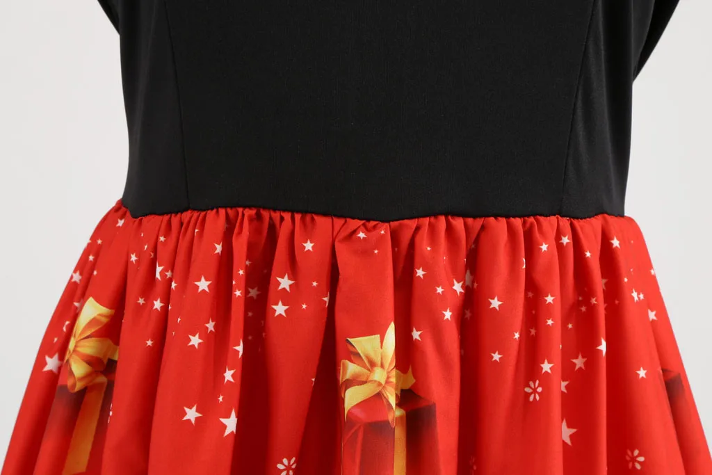 Винтажный вышитый Рождественский принт плюс Европейский королевский стиль придает вам элегантный стиль в стиле ретро; Облегающий и расклешенный силуэт подчеркивает Вашу фигуру