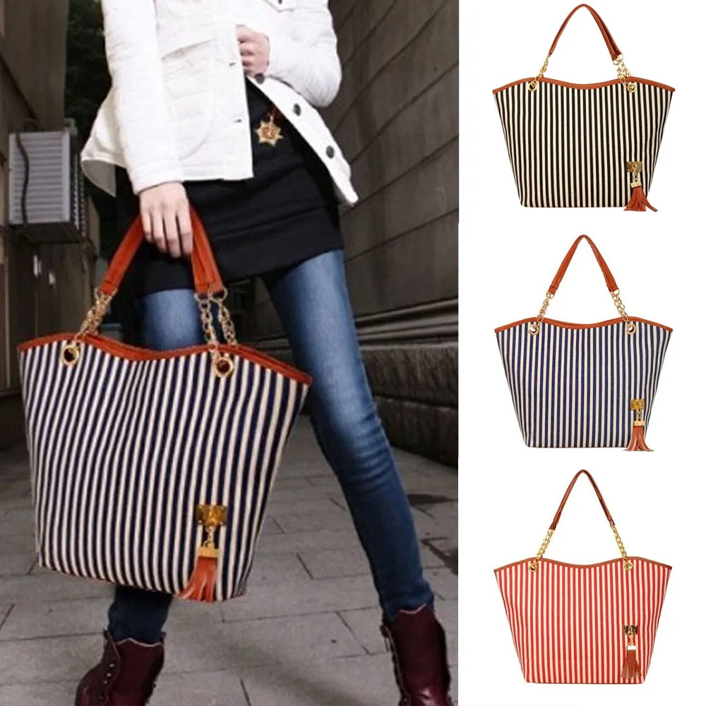 Женская Холщовая Сумка на плечо с кисточками и цепочкой