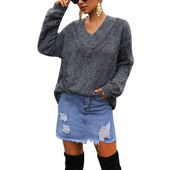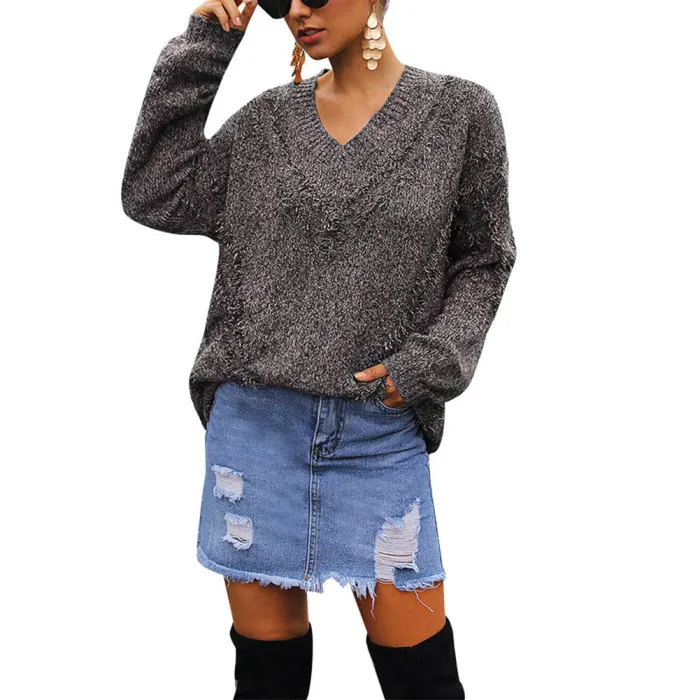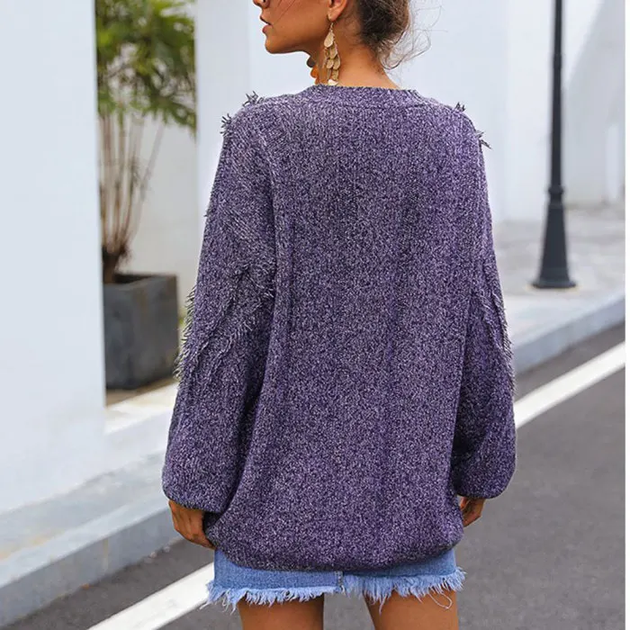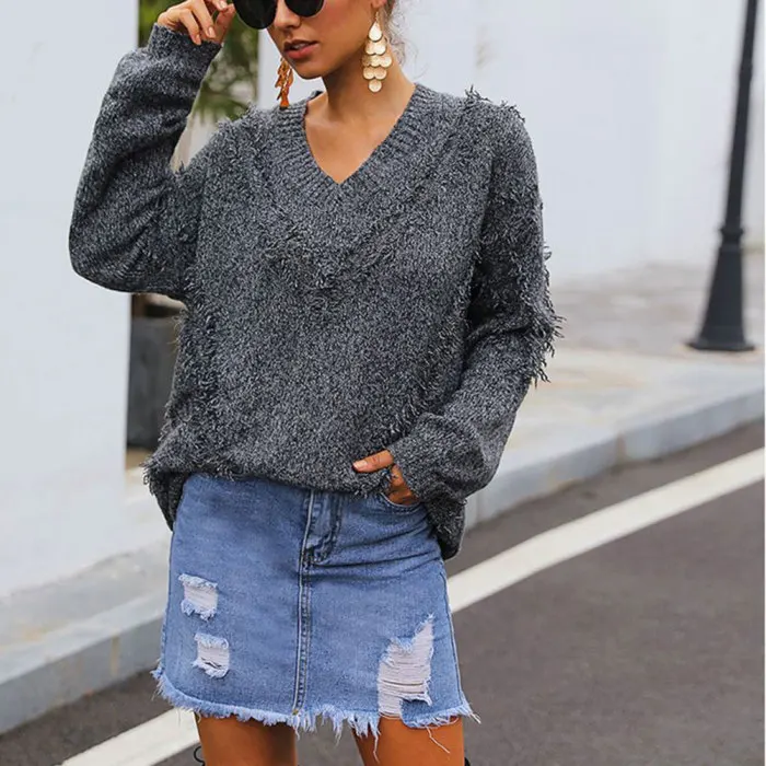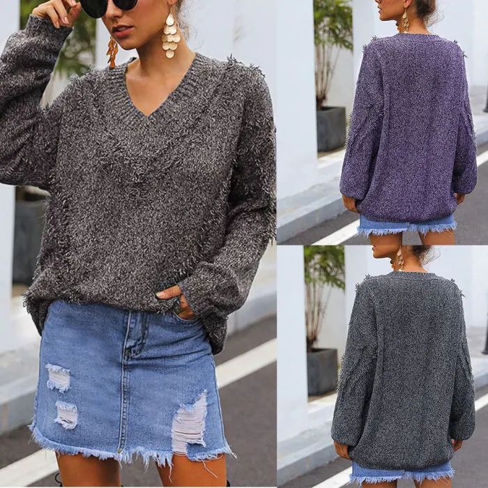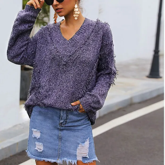 Женский свитер с v-образным вырезом и длинным рукавом, толстый свитер с кисточками, повседневные топы для путешествий, шоппинг, NFE99