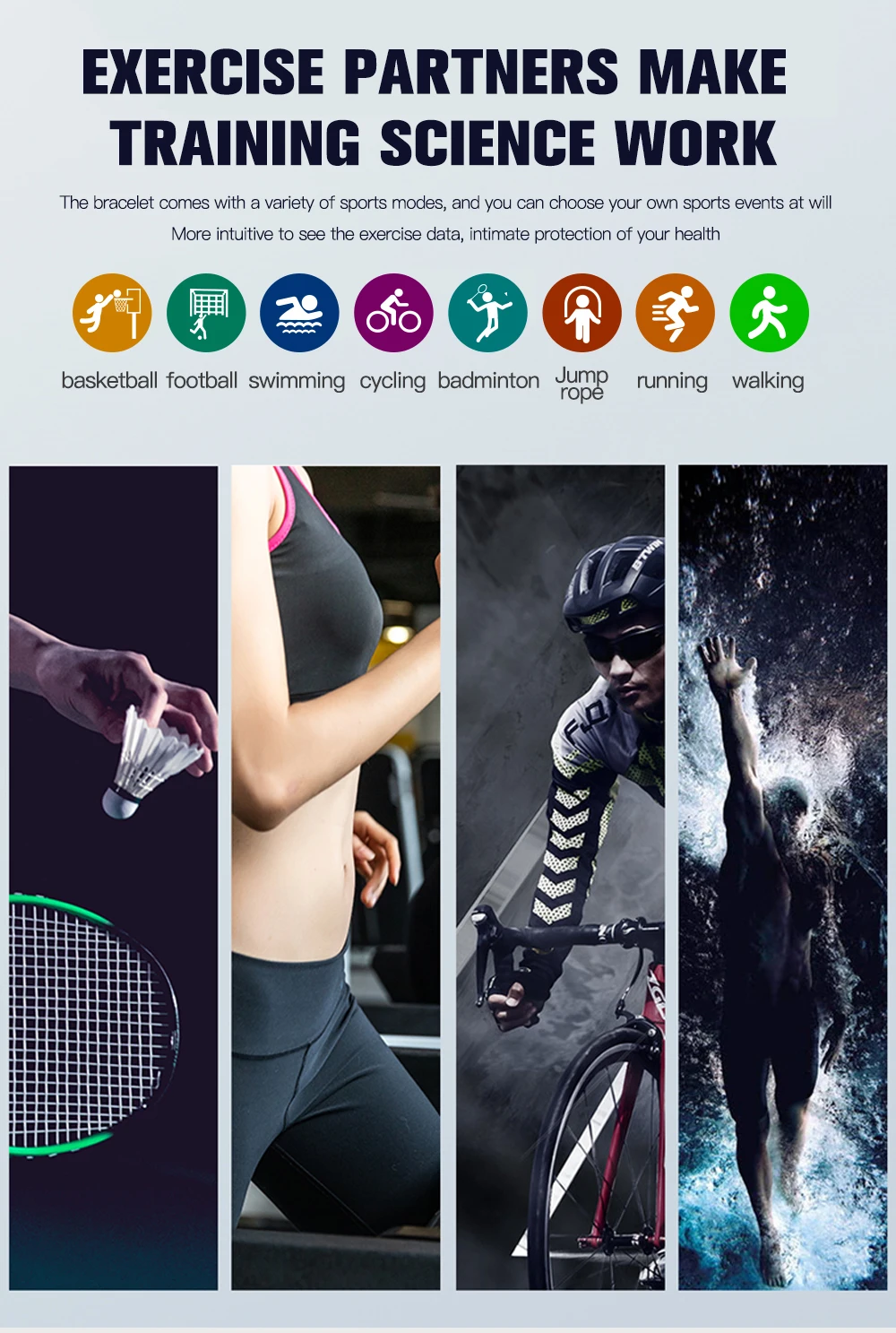 Браслет поставляется с различными спортивными режимами, и вы можете выбрать свои собственные спортивные мероприятия по желанию Более интуитивно понятный, чтобы увидеть данные упражнений, интимная защита вашего здоровья