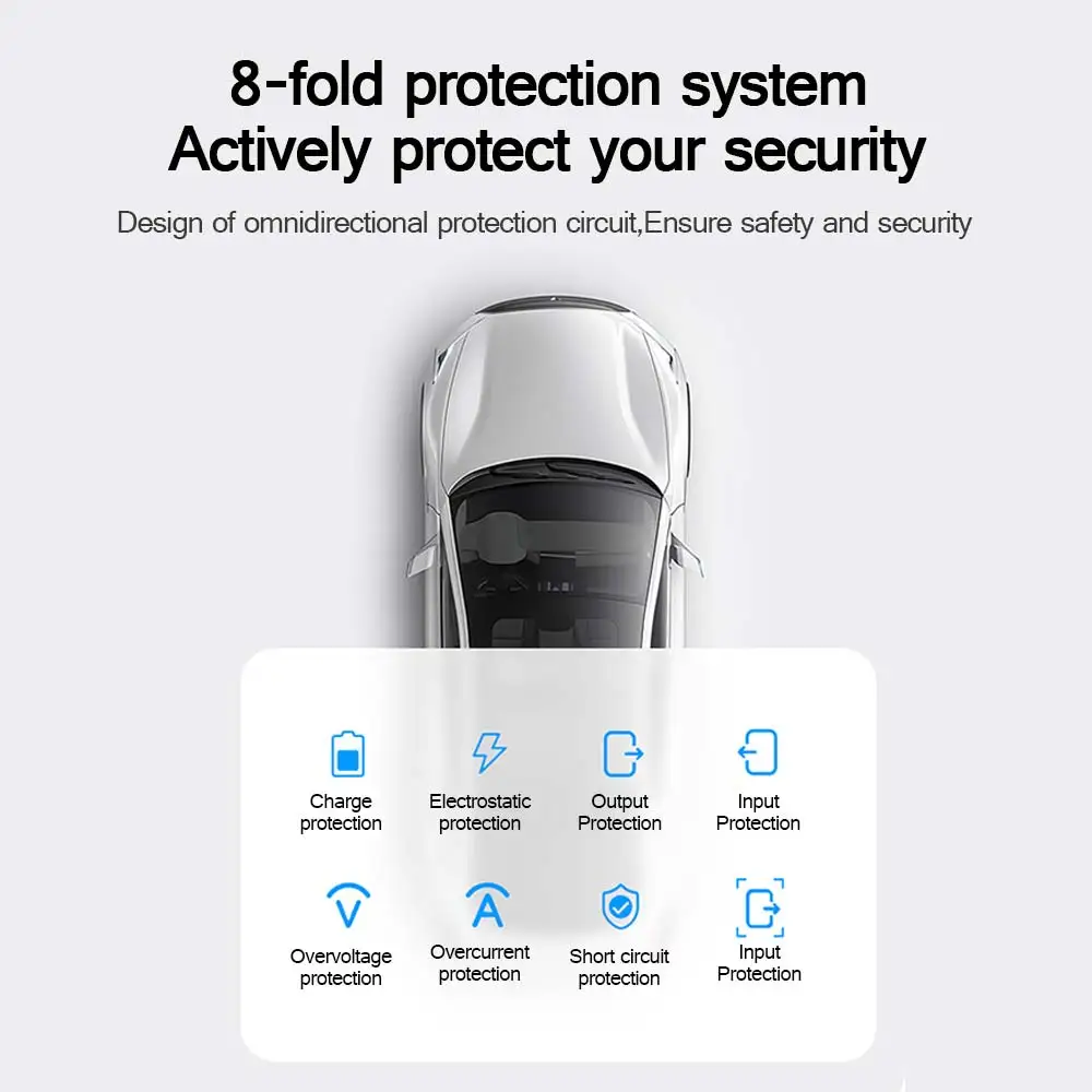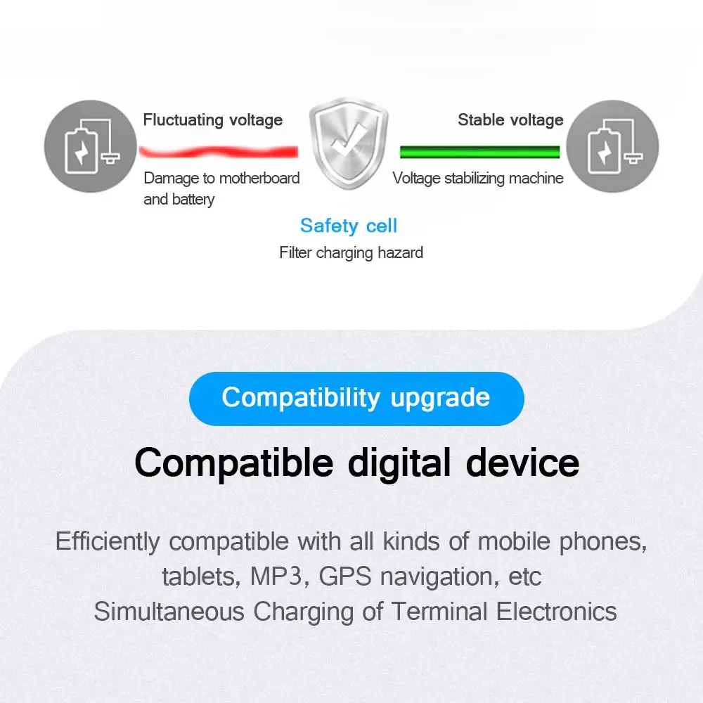 • Быстрая зарядка: 2,1 A интеллектуального быстродействующего зарядного устройства. Начните зарядку, когда автомобиль запустит, перестаньте заряжать, когда автомобиль остановится. Заряжайте все время при полной мощности.