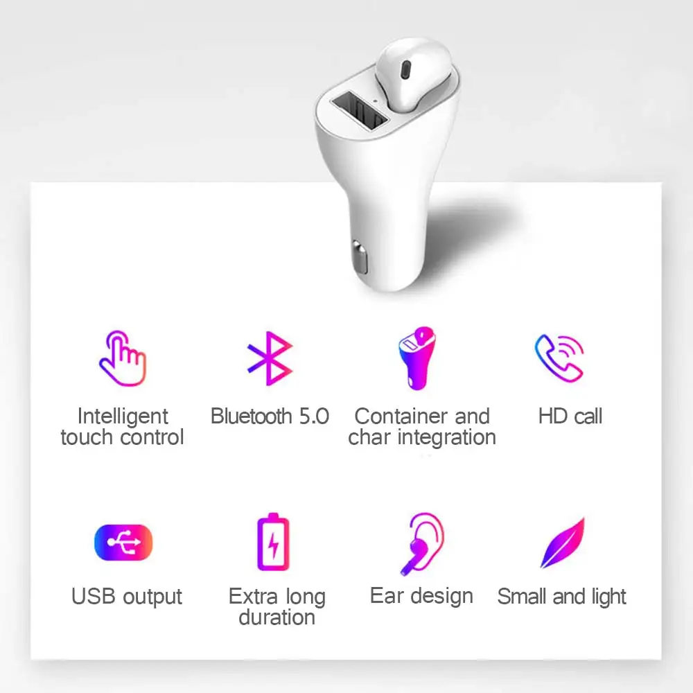 * 2 в 1 полезный комплект для автомобиля с Bluetooth: умное автомобильное зарядное устройство с одним портом USB + беспроводные bluetooth-гарнитуры (автомобильное зарядное устройство на автомобиль + мини-гарнитура с Bluetooth в ухо).