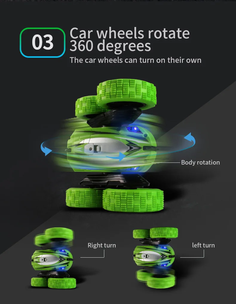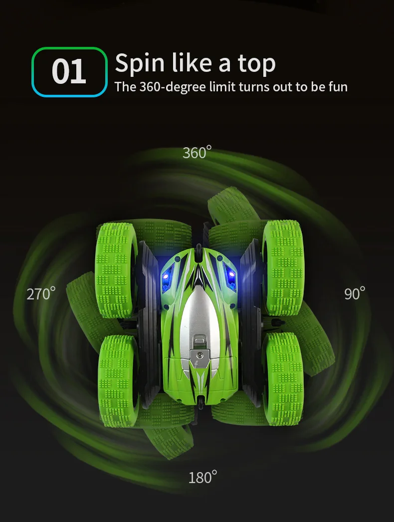 1. Двухсторонний рулон, вращение на 360 градусов. 2. Используйте резиновую дорожку, нейлоновое колесо, высококачественный экологичный ПВХ материал, трение поверхности, сильное сцепление. 3. Крутой светодиодный светильник, двухсторонний передний яркий светильник, дает мощный визуальный эффект. 4. Каскадные колеса могут быть перевернуты вертикально и другими специальными трюками. 5. Радиоуправляемая каскадная машина, игрушечный багажник для детей старше шести лет или взрослых.