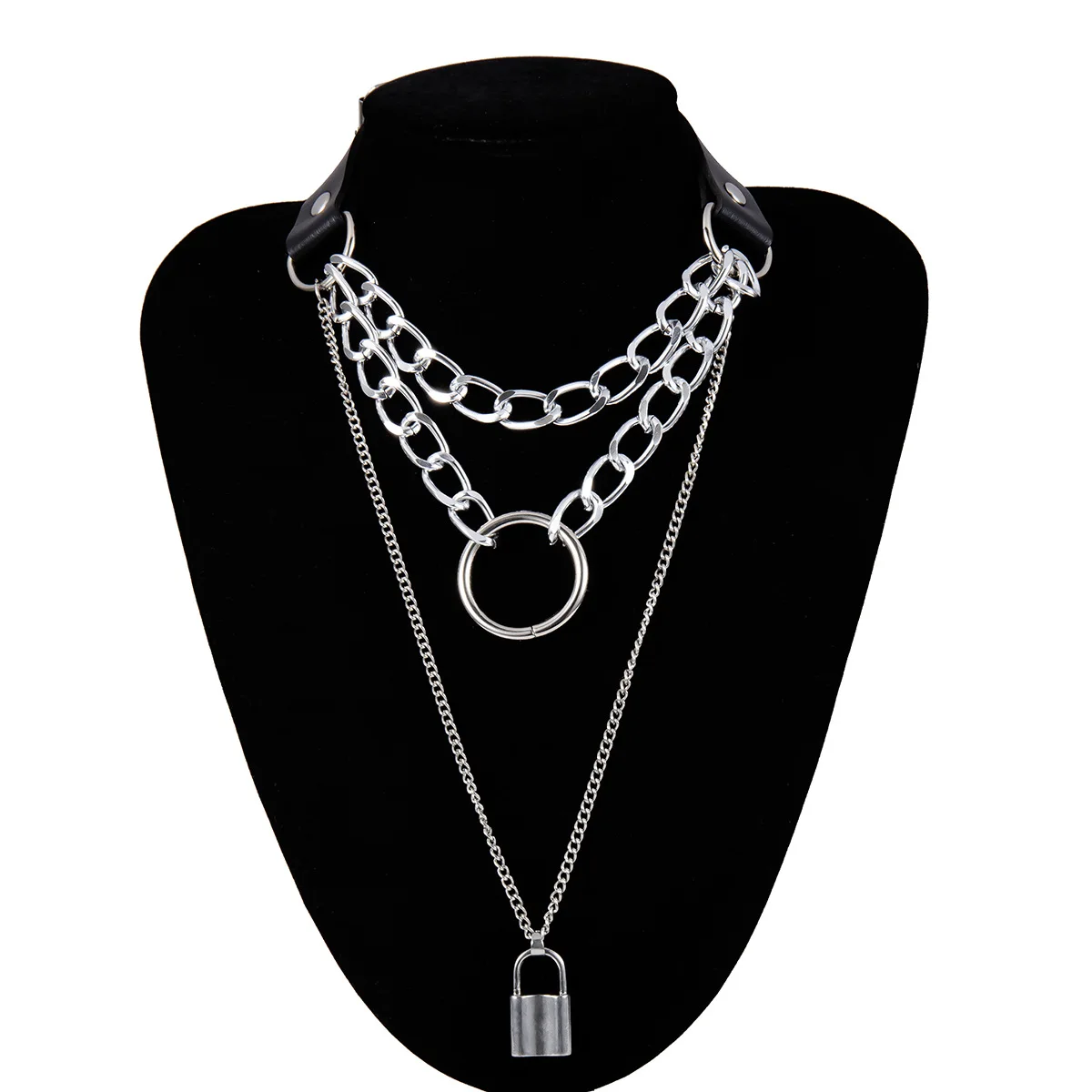 DIEZI Косплей Винтаж Панк Серебряная цепочка колье ожерелье для женщин Готический сексуальный круглый кулон ожерелья аниме Harajuku ювелирные изделия