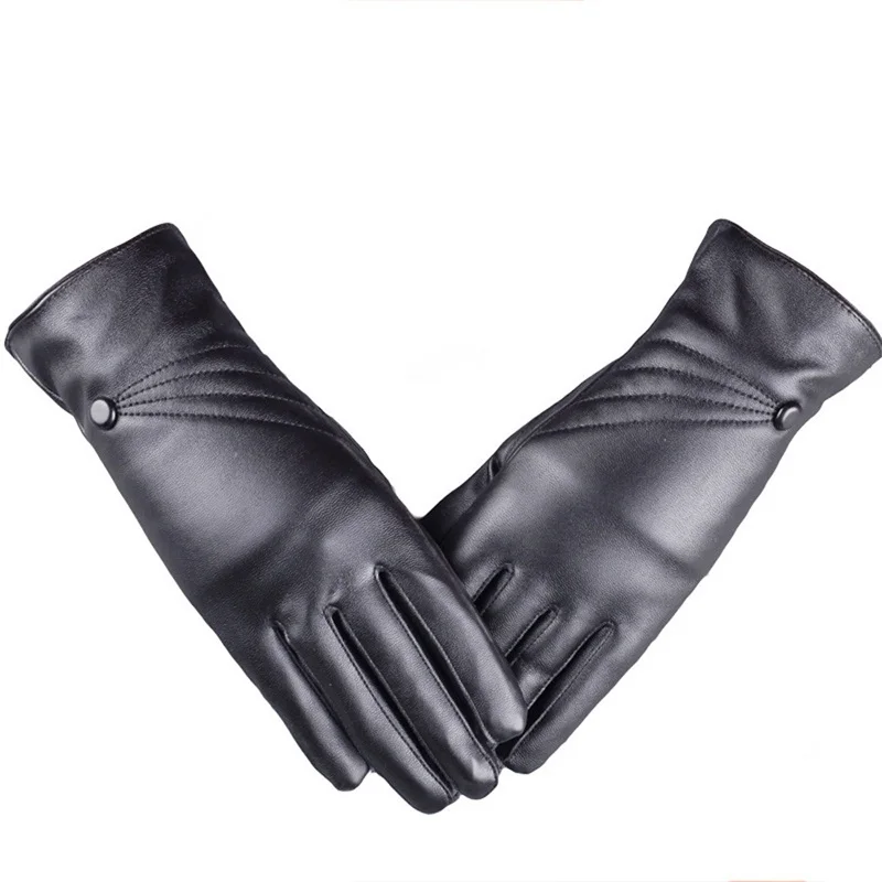 Роскошные женские кожаные зимние супер теплые перчатки из кашемира
